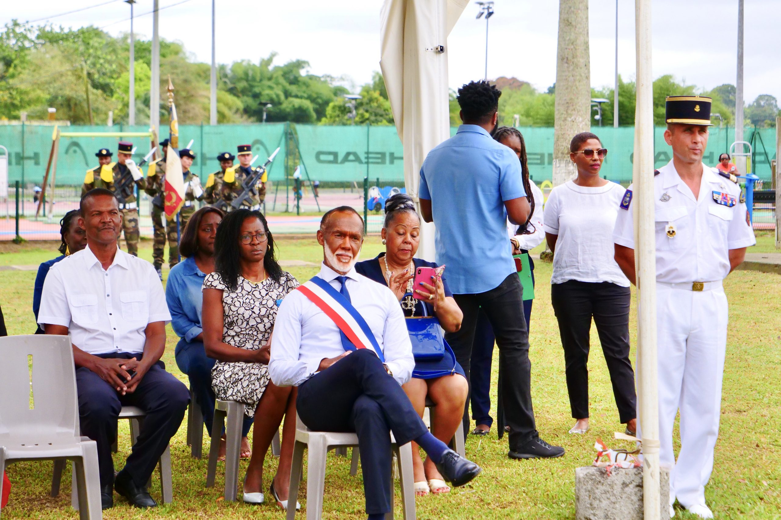 Elle a été présidée par le colonel Yann BEGUE, commandant en second du régiment du service adapté de la Guadeloupe et autorité militaire présidant (AMP) en présence de monsieur le 1er adjoint, Ephrem GLORIEUX, des élus municipaux et des élèves des classes de CM2, de l’école du Bourg.