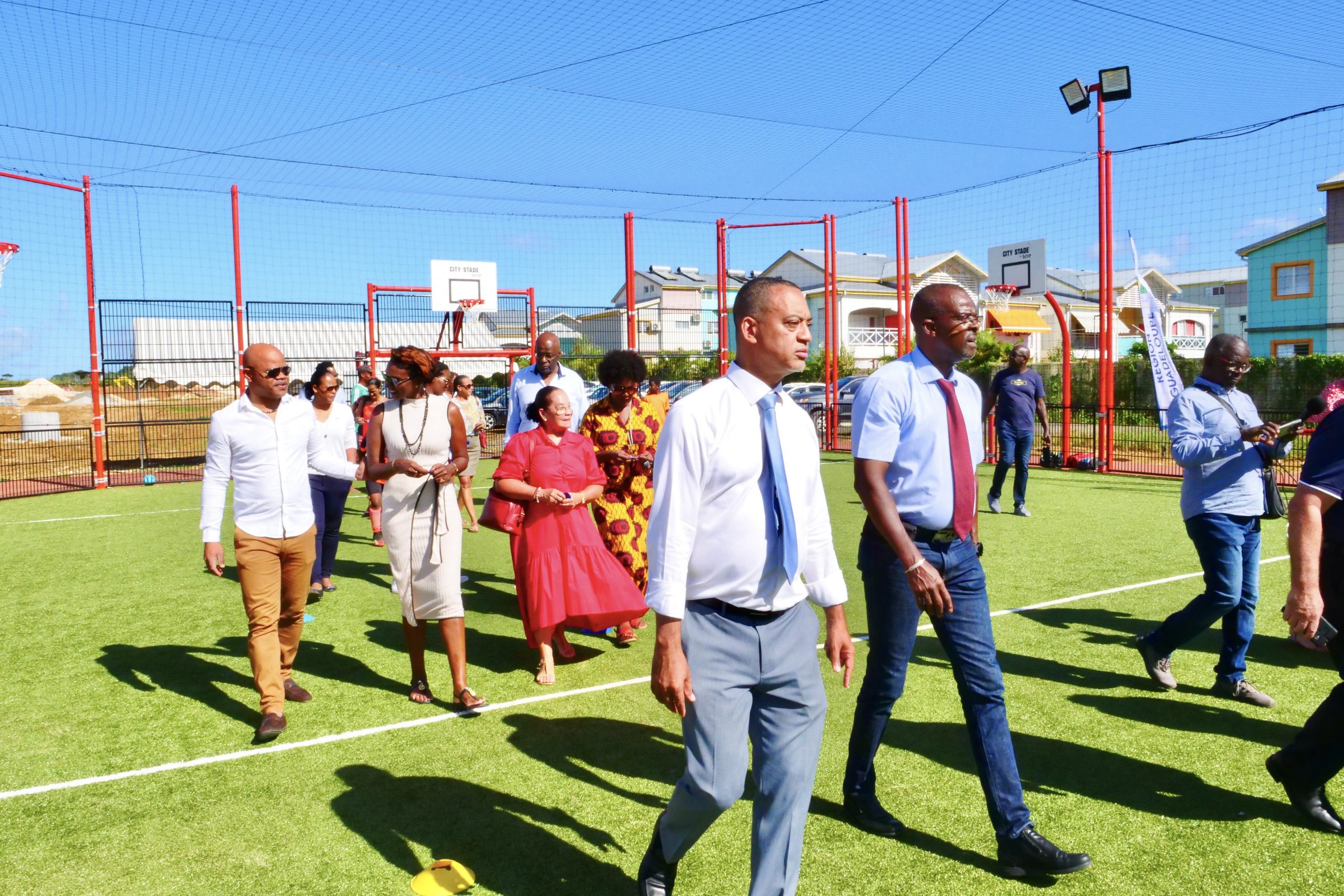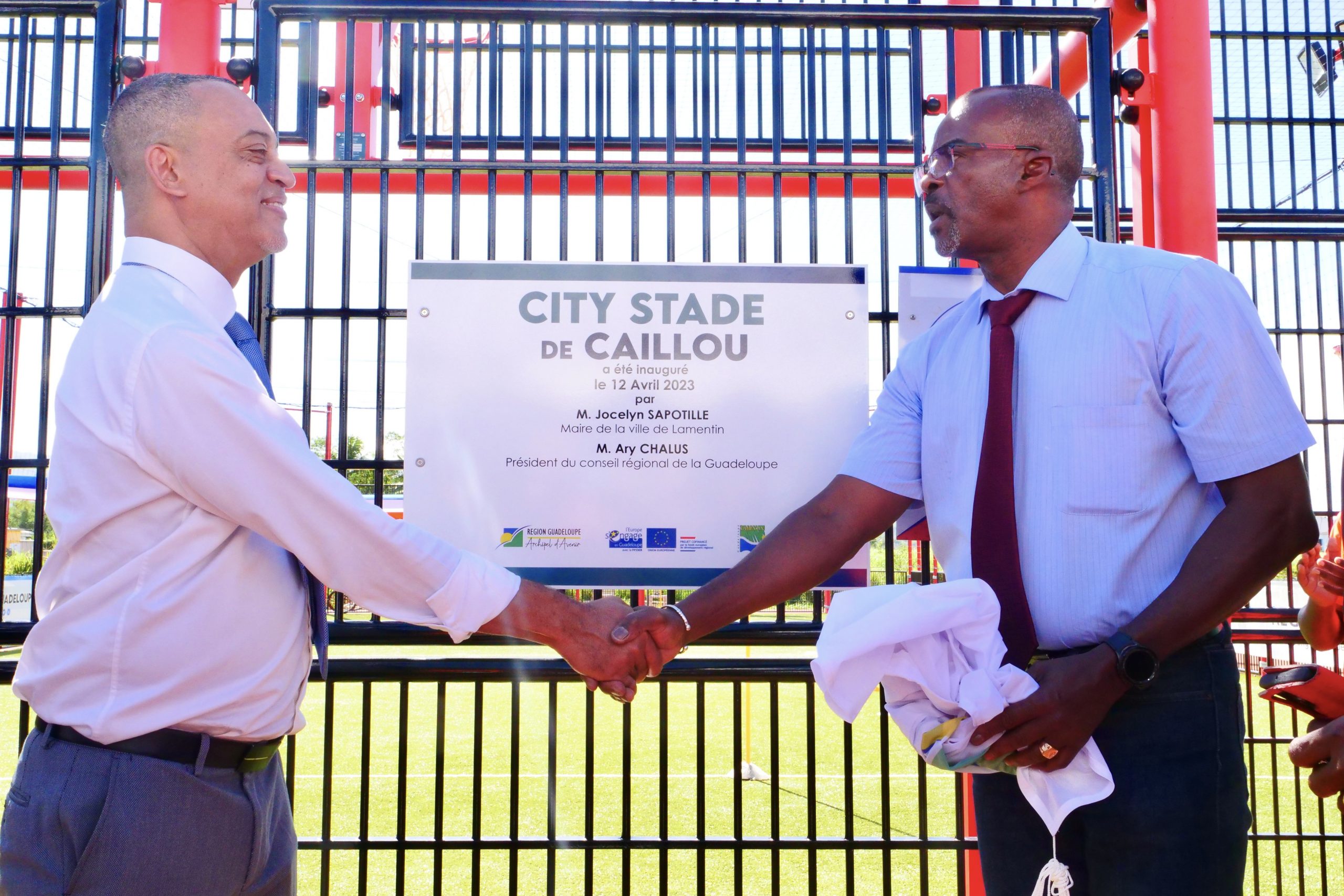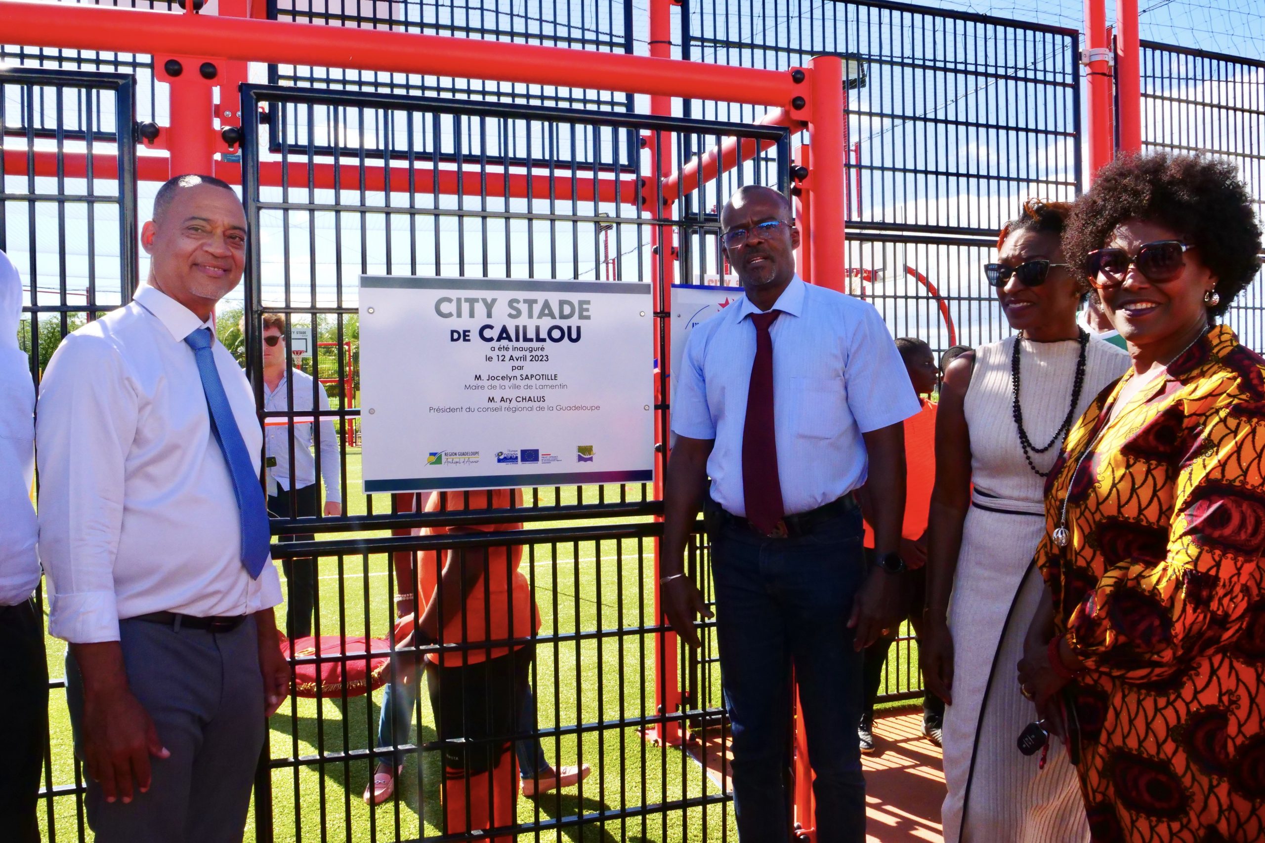 Ce mercredi 12 avril 2023, a eu lieu l’inauguration de la base sportive « City stade », située à Caillou, en présence du président du conseil Régional Ary CHALUS, du Maire de Lamentin Jocelyn SAPOTILLE et des élus municipaux.