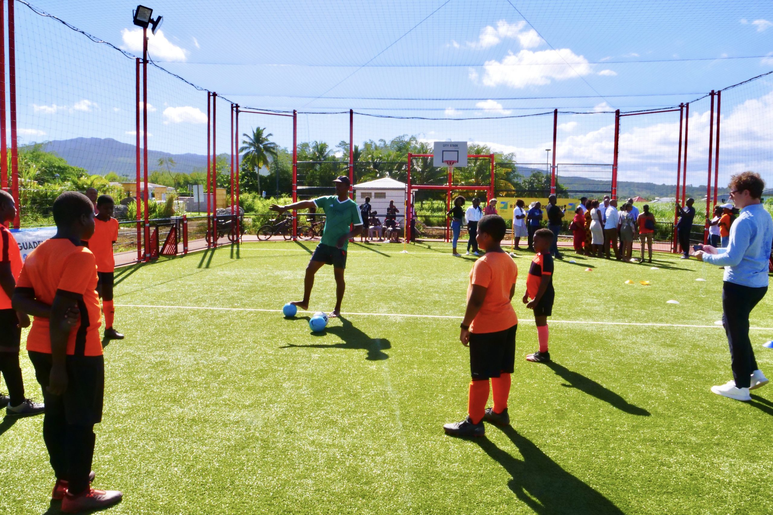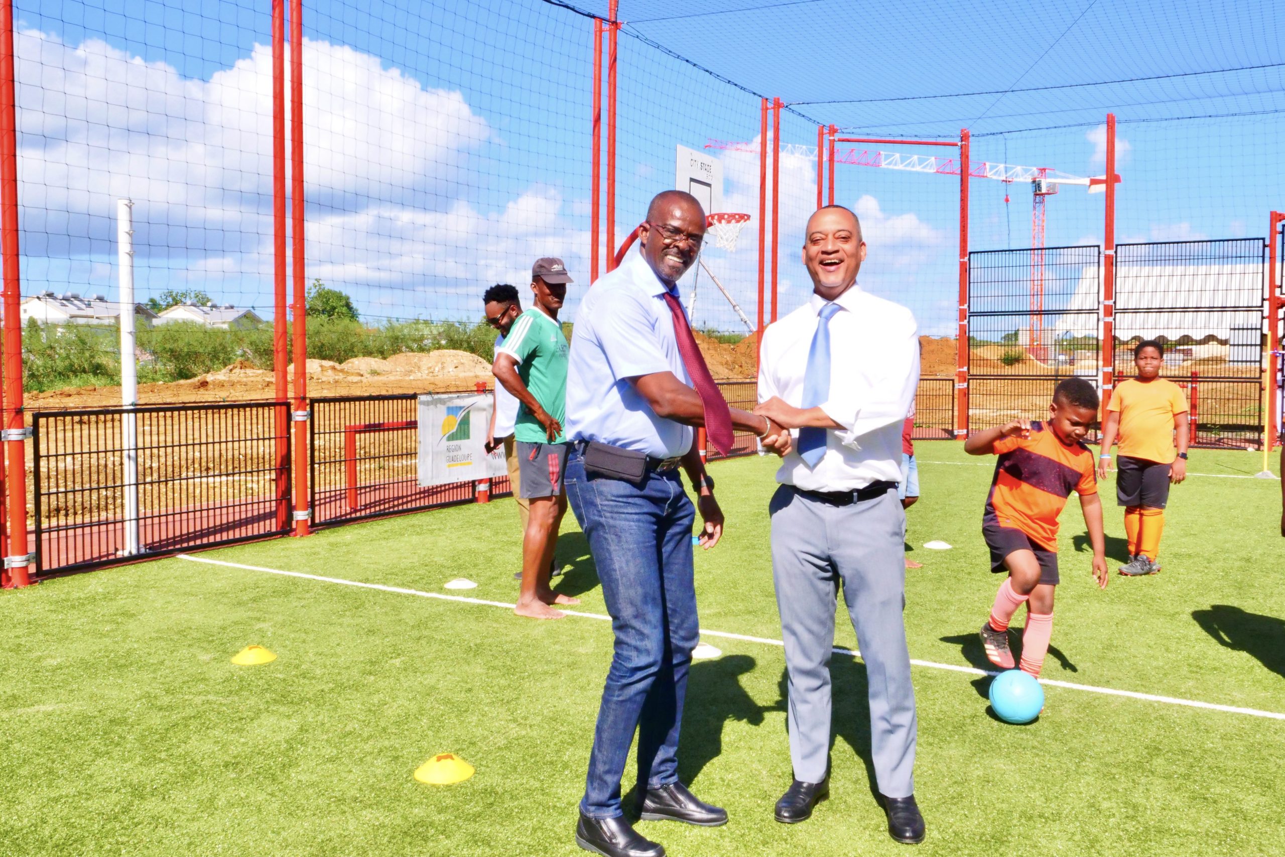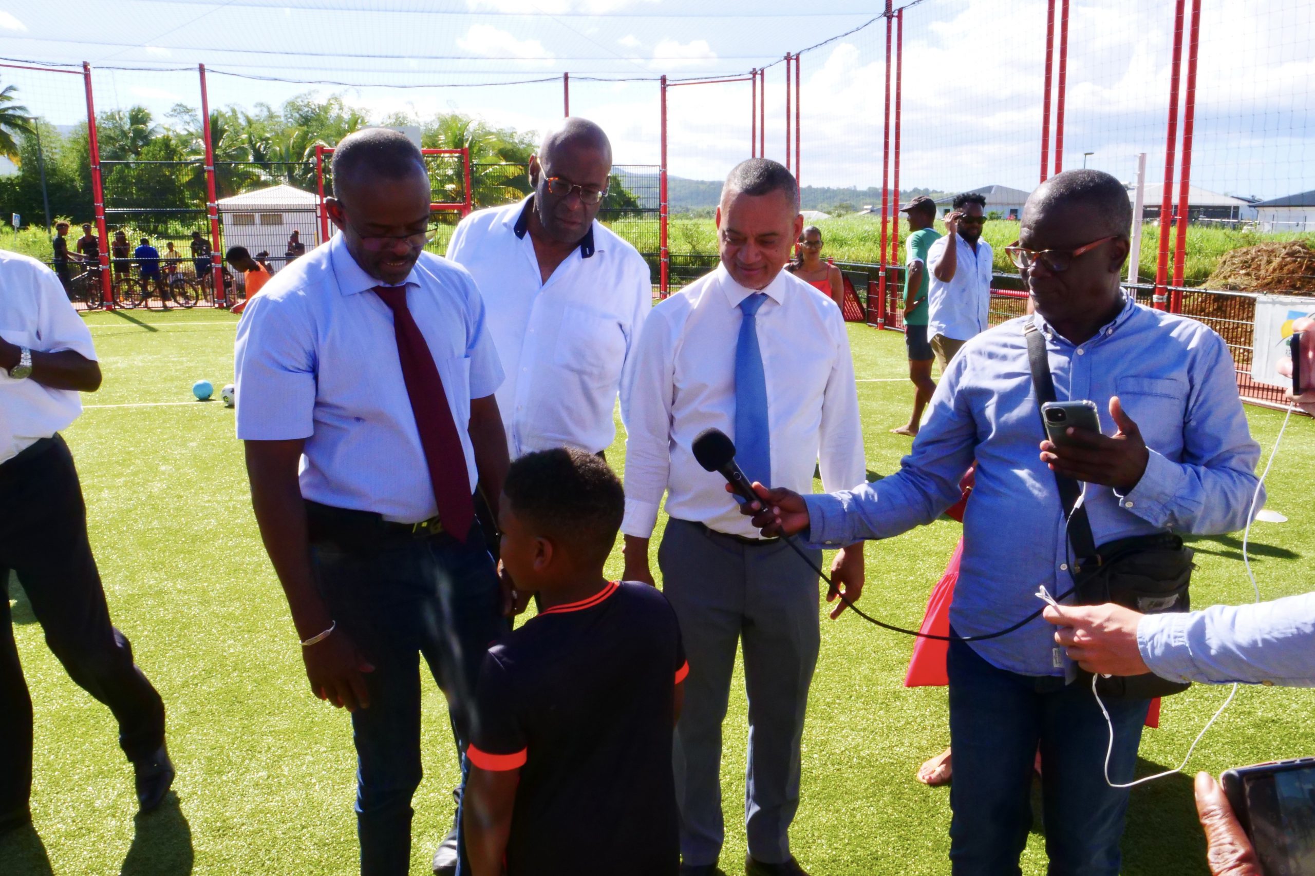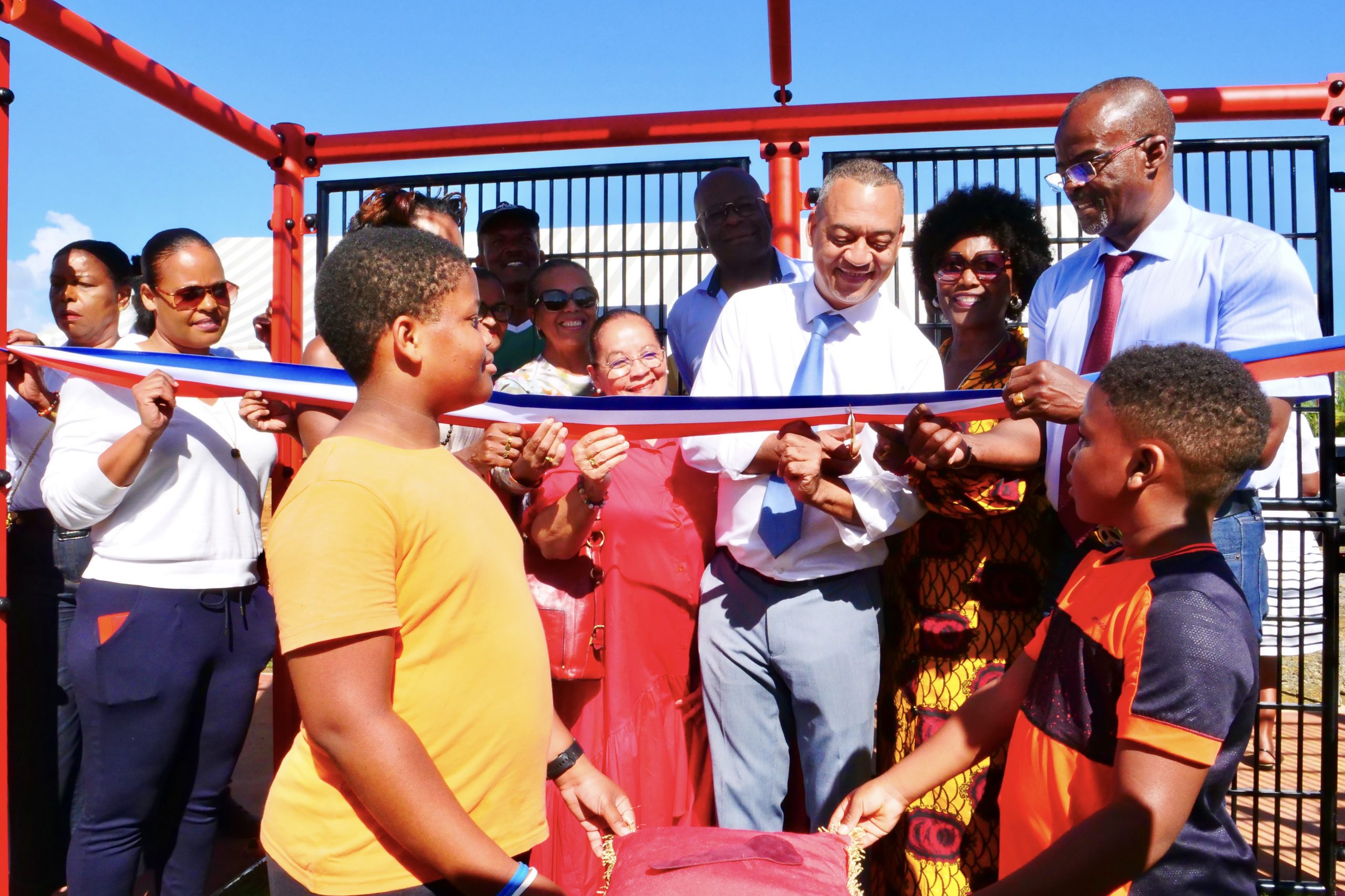 Ce mercredi 12 avril 2023, a eu lieu l’inauguration de la base sportive « City stade », située à Caillou, en présence du président du conseil Régional Ary CHALUS, du Maire de Lamentin Jocelyn SAPOTILLE et des élus municipaux.