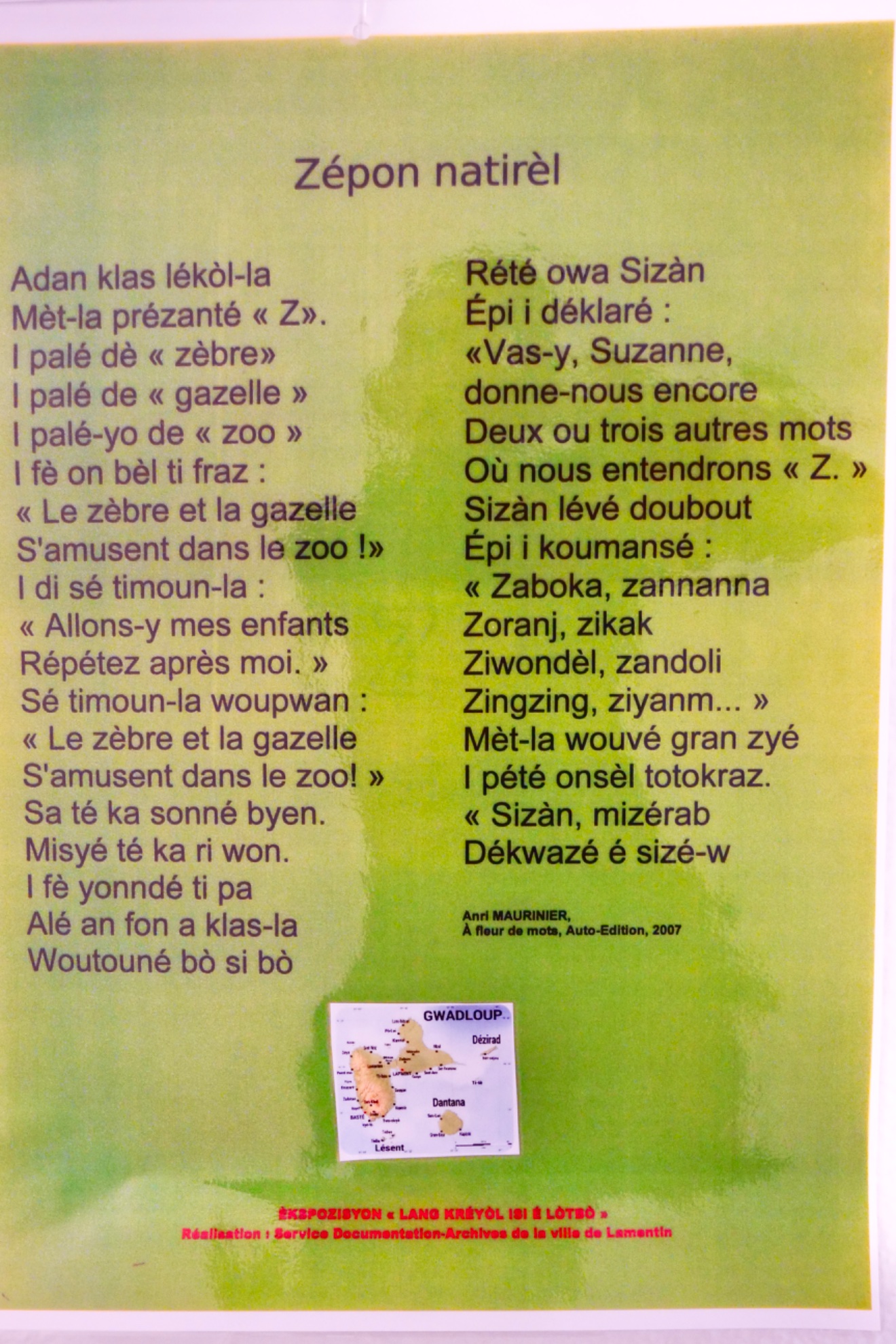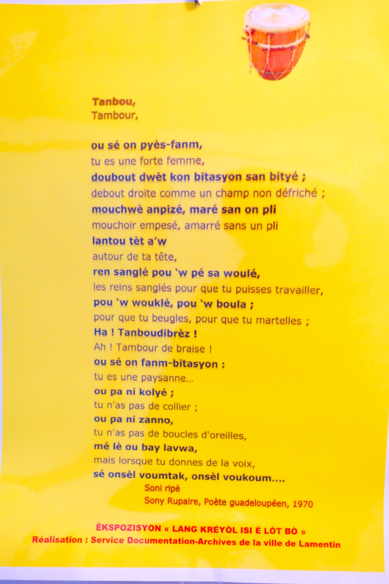 🌱À l’occasion de la journée internationale du créole, célébrée le 28 octobre 2024, Mme LIBON Anne-Marie, responsable du service Documentation-Archives, et son équipe ont présenté l’exposition LANG KRÉYÒL ISI É LÒTBÒ, qui met en valeur proverbes, poésies, expressions créoles. Rimed razyé.