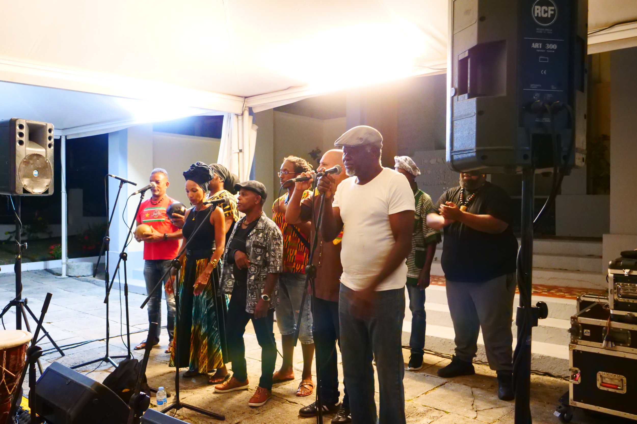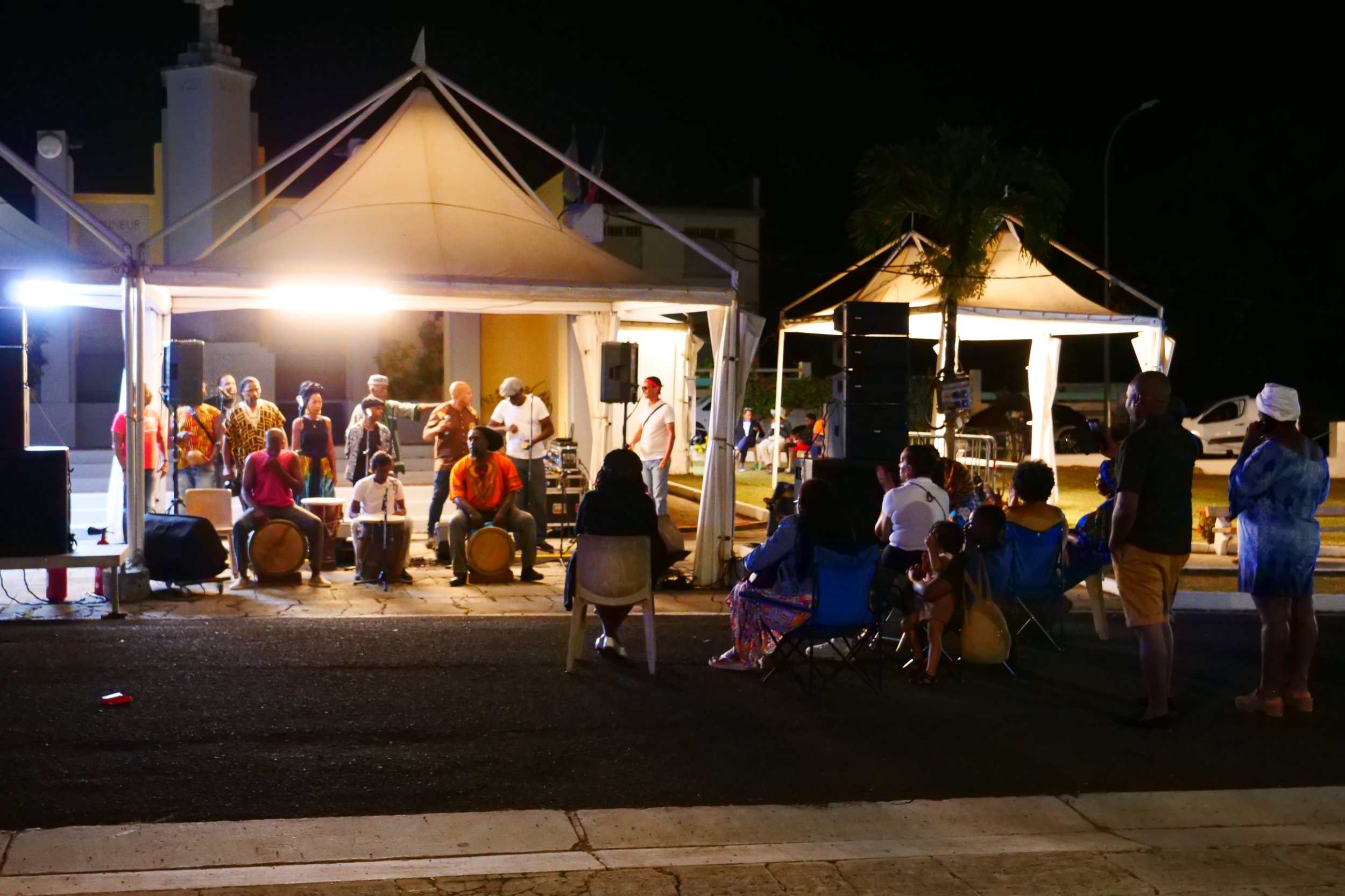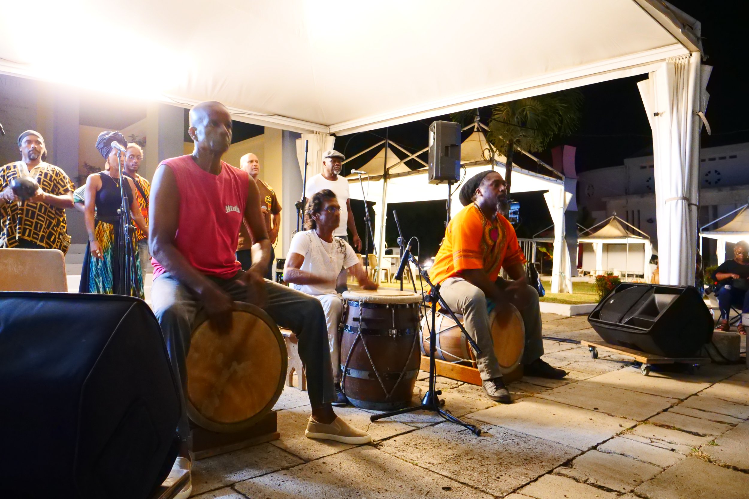 Tambouyé, danseurs, chanteurs et public se sont réunis pour faire vibrer la nuit au rythme du tambour ka, dans une ambiance authentique, festive et chargée d’émotion.
