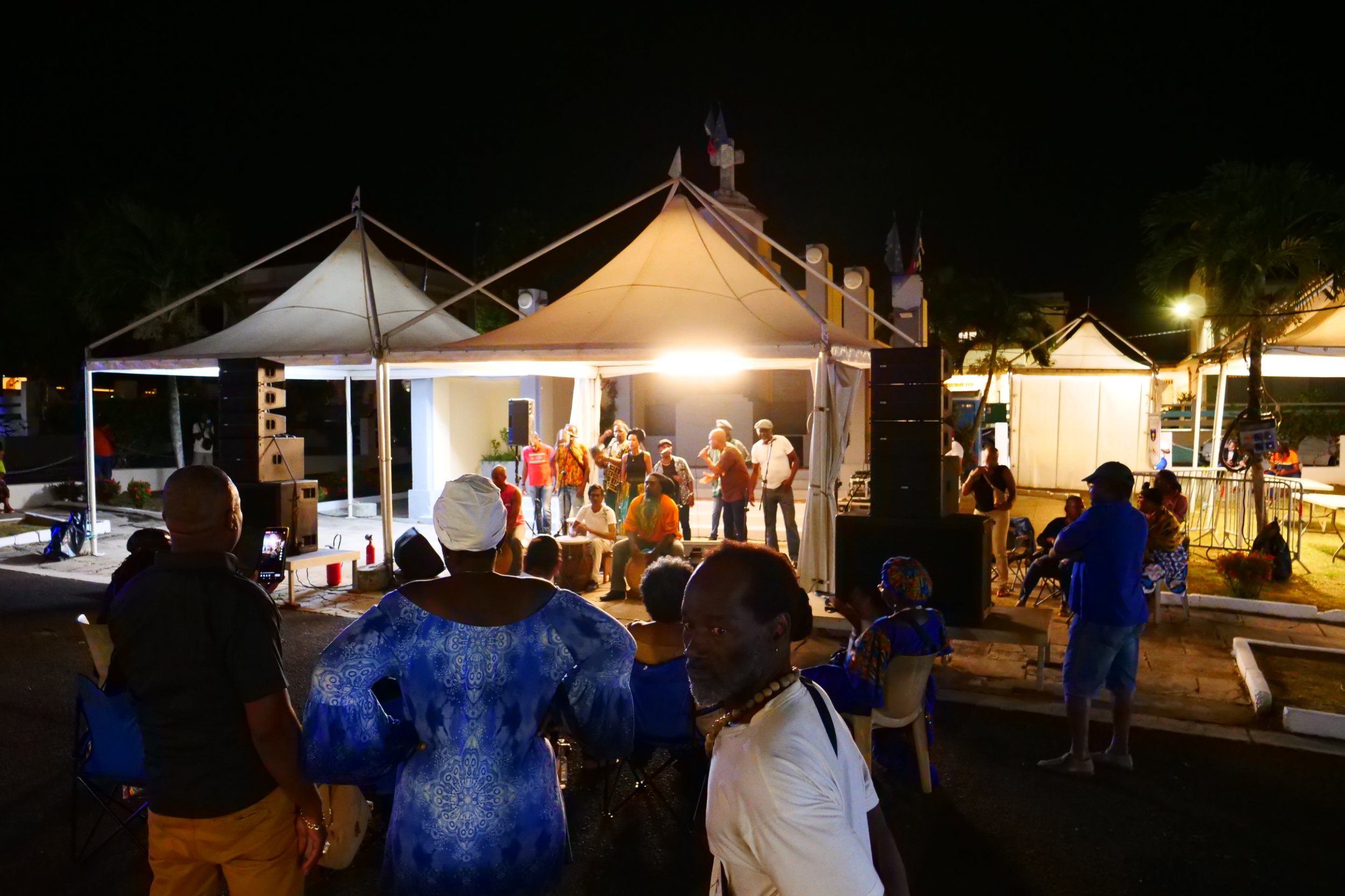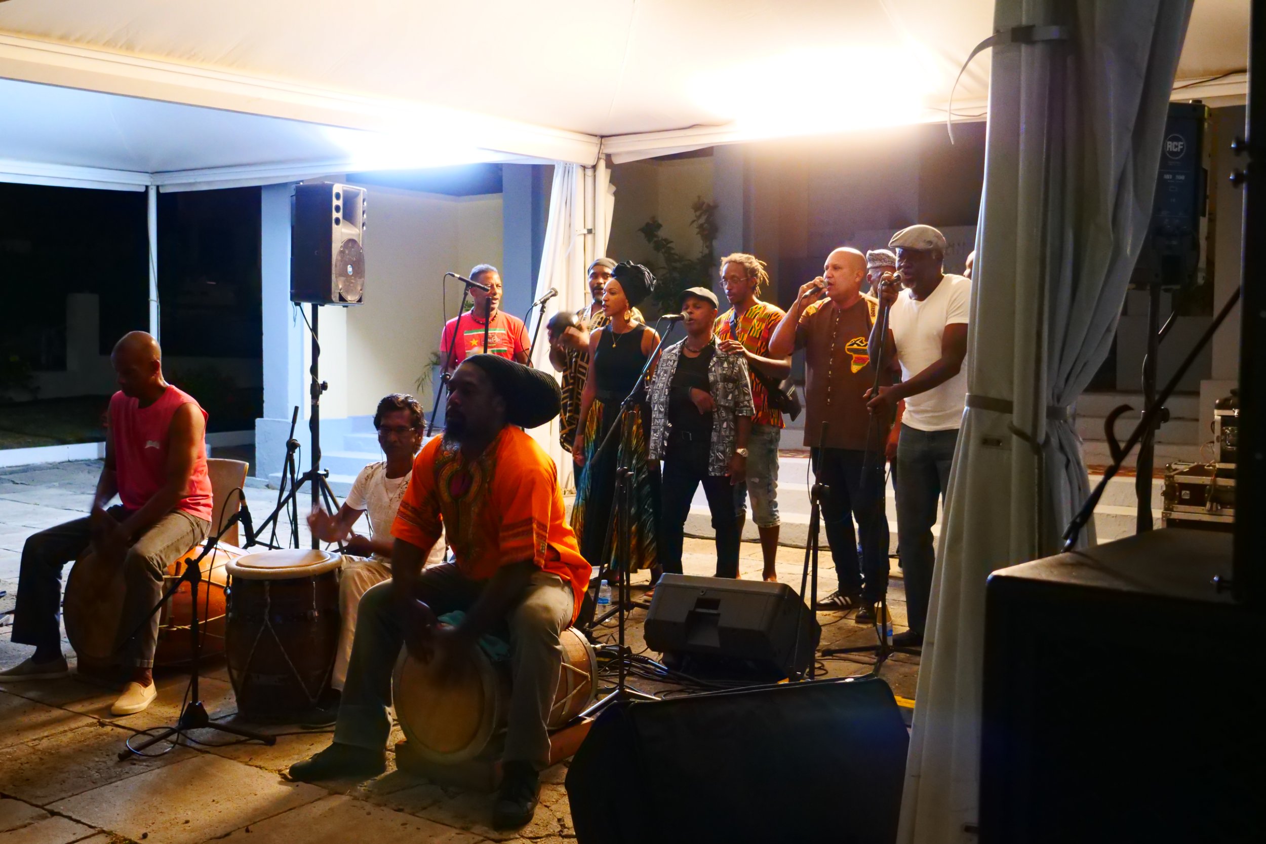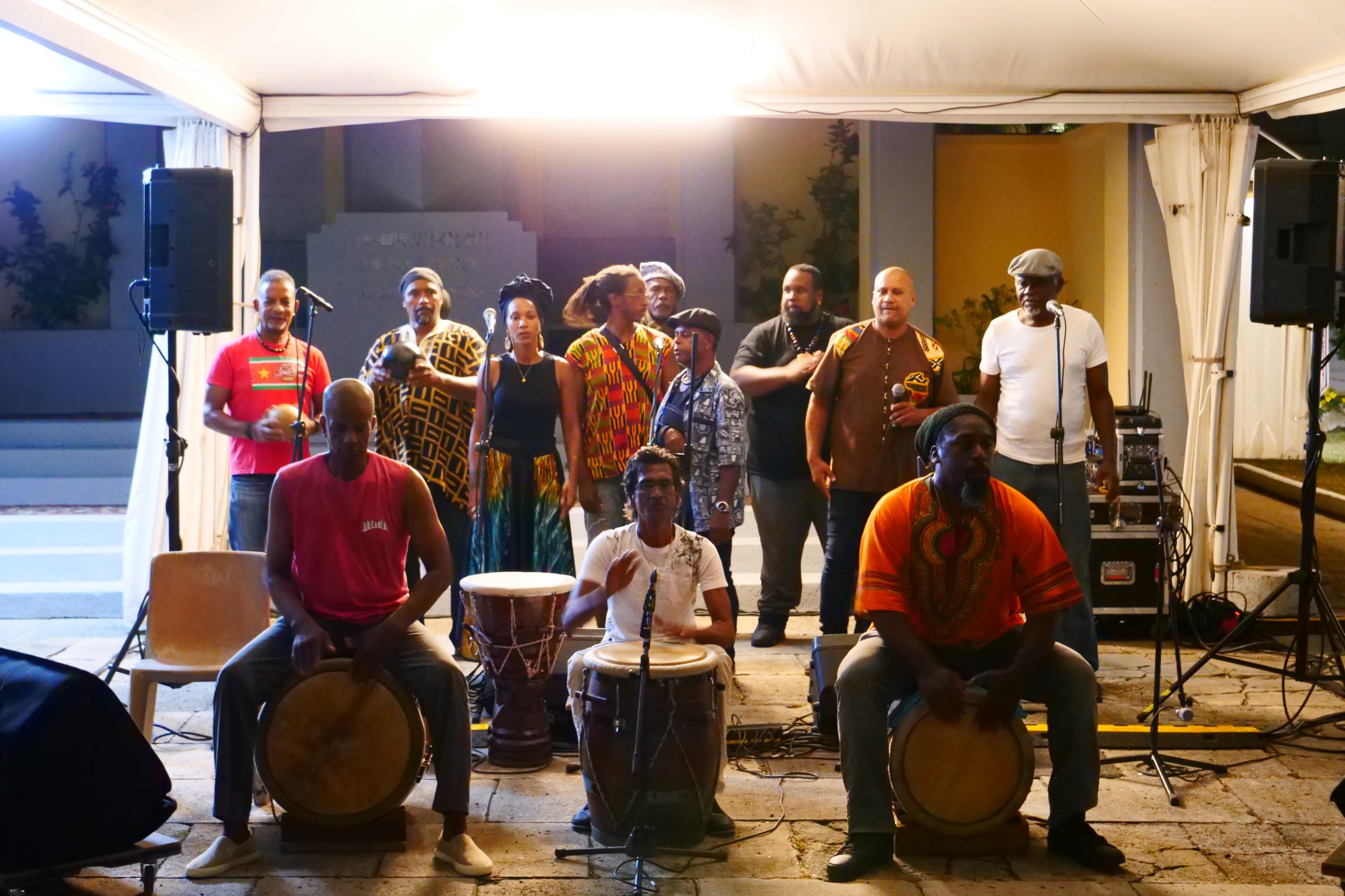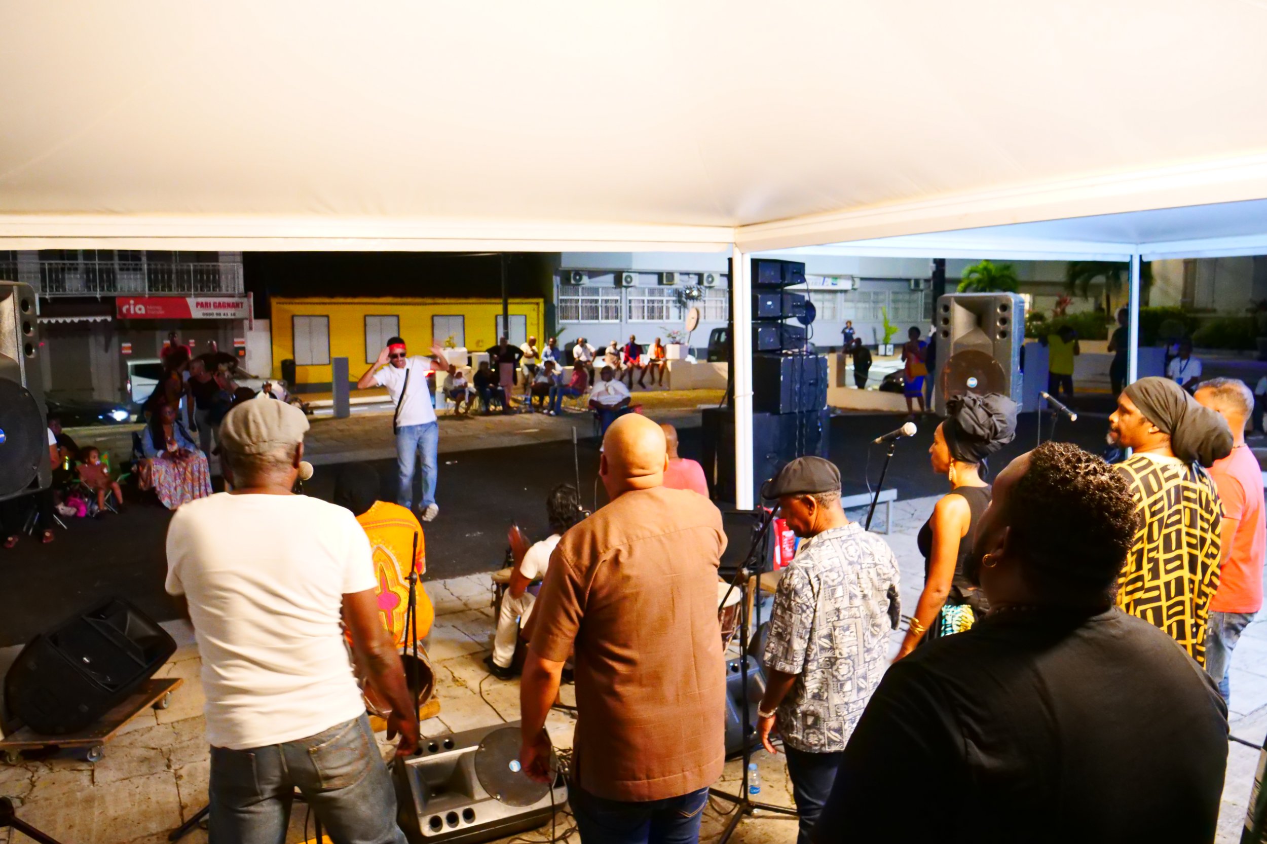 Tambouyé, danseurs, chanteurs et public se sont réunis pour faire vibrer la nuit au rythme du tambour ka, dans une ambiance authentique, festive et chargée d’émotion.