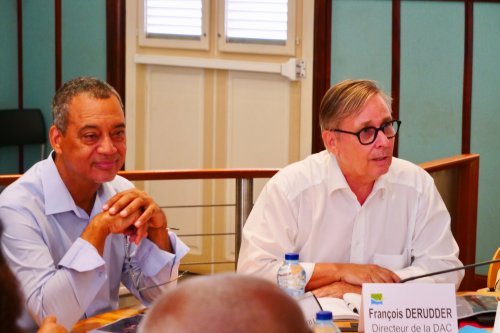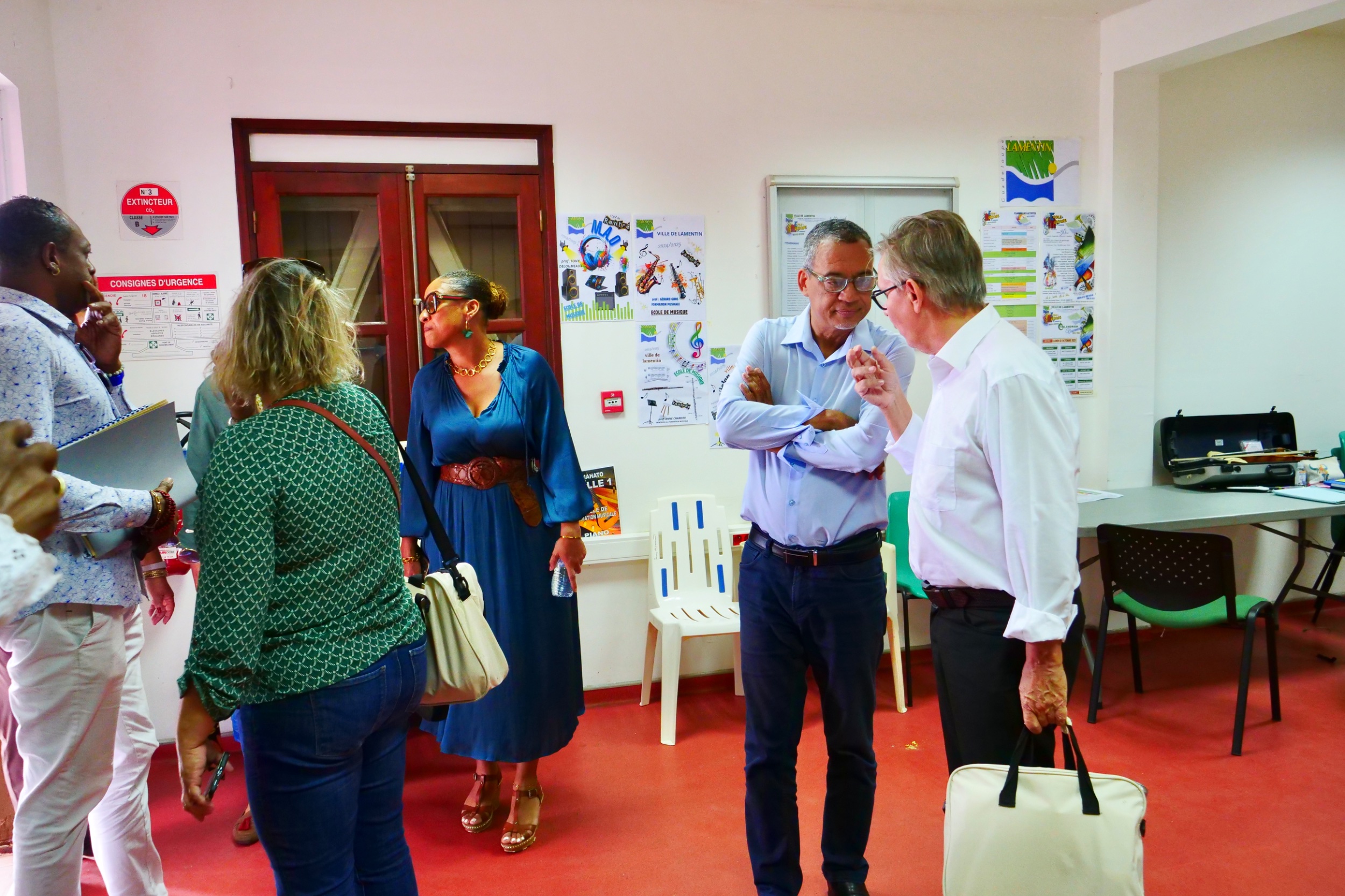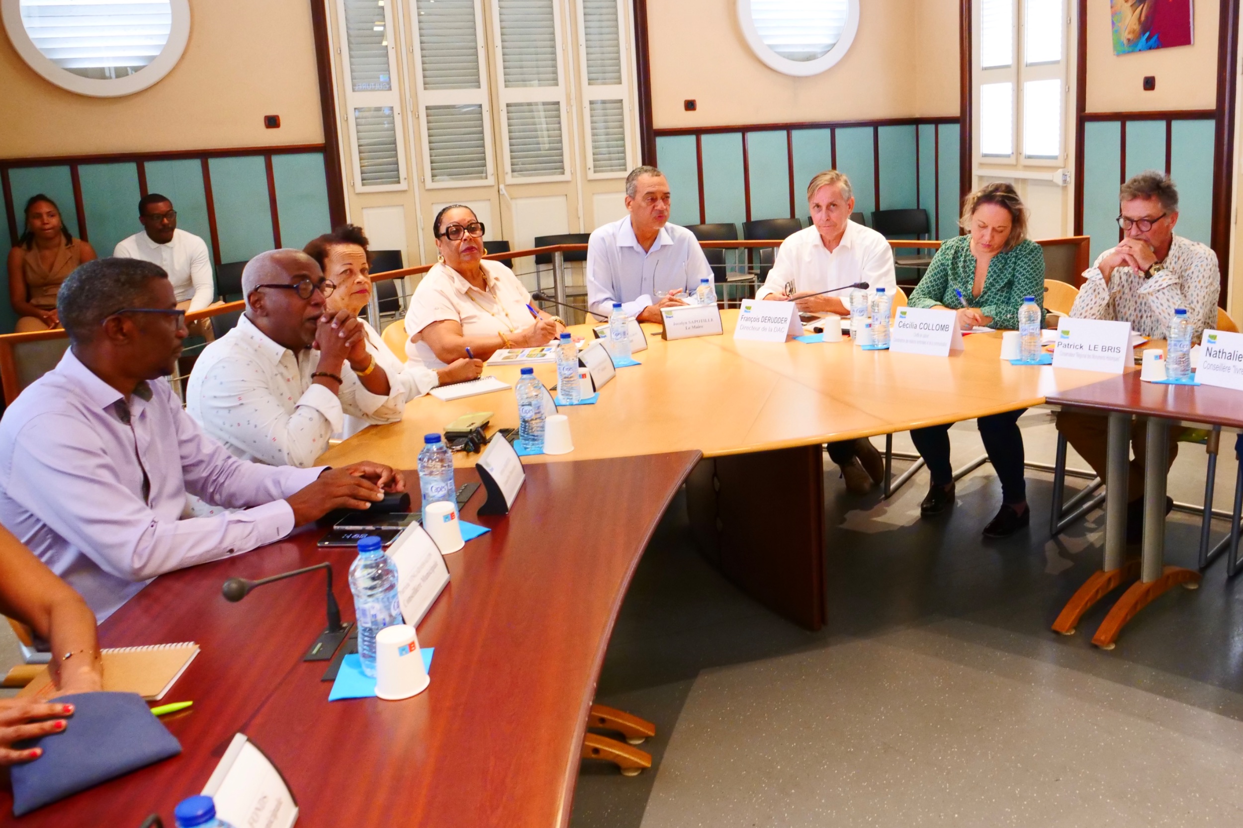 Mercredi 19 février 2025 : M. Jocelyn SAPOTILLE, maire de la ville de Lamentin, entouré des membres de son conseil municipal et de son équipe administrative, a eu l’honneur d’accueillir M. François DERUDDER, directeur des affaires culturelles de Guadeloupe (DAC), accompagné de ses collaborateurs. Cette rencontre visait à faire un point détaillé sur les projets en cours ainsi que sur les initiatives à venir pour la commune de Lamentin. L’échange, à la fois constructif et prometteur, marque une étape décisive dans le développement culturel et communal de notre territoire.