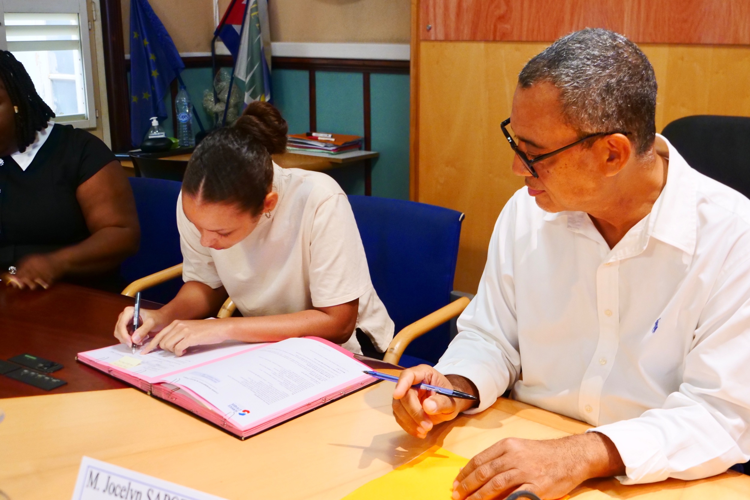 Le vendredi 5 décembre 2025, le Service Insertion et Médiation Sociale du Pôle Enfance, Jeunesse et Cohésion Sociale de la Ville de Lamentin a organisé la cérémonie de signature des contrats des volontaires en Service Civique. Les jeunes sont venus en salle des délibérations pour officialiser leur engagement, en présence de Monsieur le Maire Jocelyn Sapotille, de M. Maricel Didier, élu en charge de l’insertion sociale et professionnelle, et des équipes administratives.