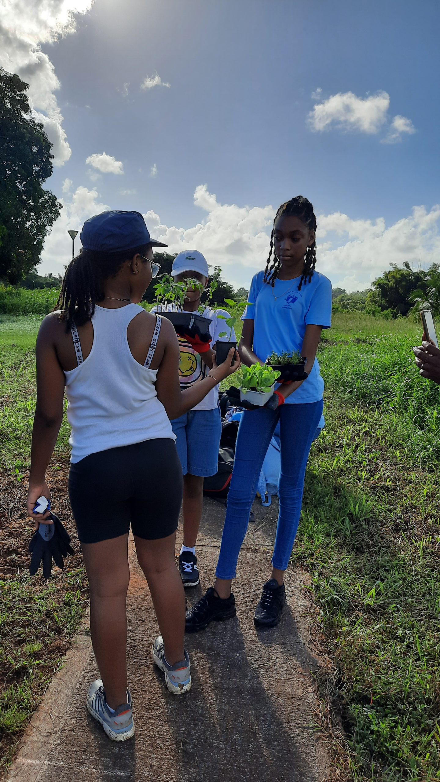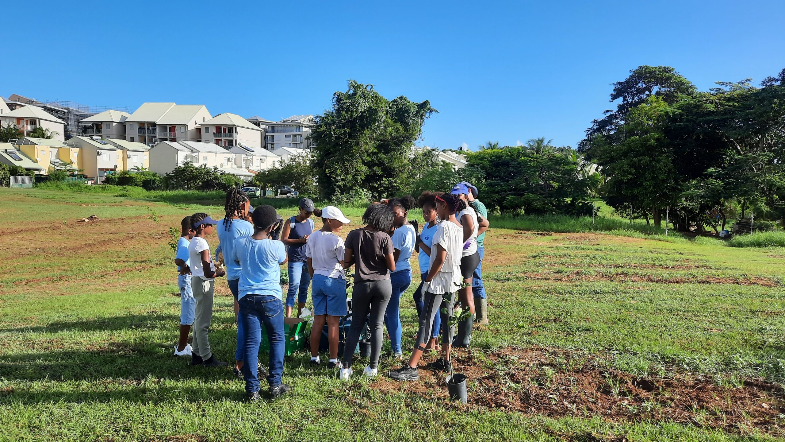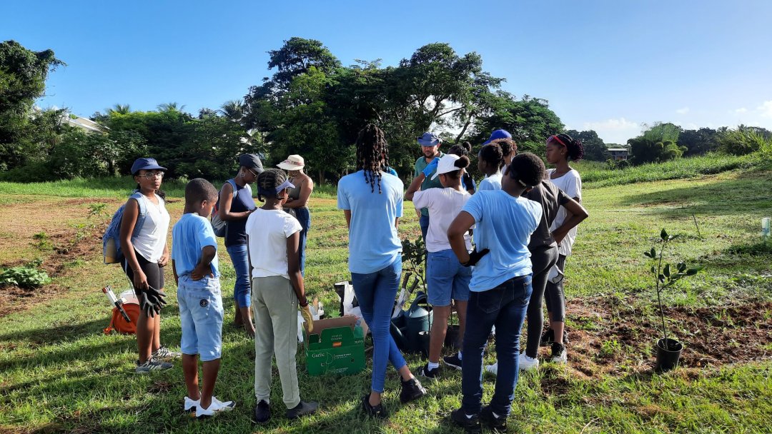Ce mardi 14 novembre 2023, la commune a associé 12 éco-délégués Unesco du collège Appel du 18 juin de Lamentin au projet des jardins partagés. Ce fût l’occasion pour les élèves accompagnés de leur professeur d’anglais : Mme Duflo, de l’assistante sociale du collège : Mme Letourneur, de la Directrice du pôle développement durable : Marie-Eve Jaffard et de l’ingénieur en agroforesterie : Pierre-Antoine Faddoul de réaliser une action de plantations tout en les sensibilisant aux enjeux alimentaires et environnementaux.