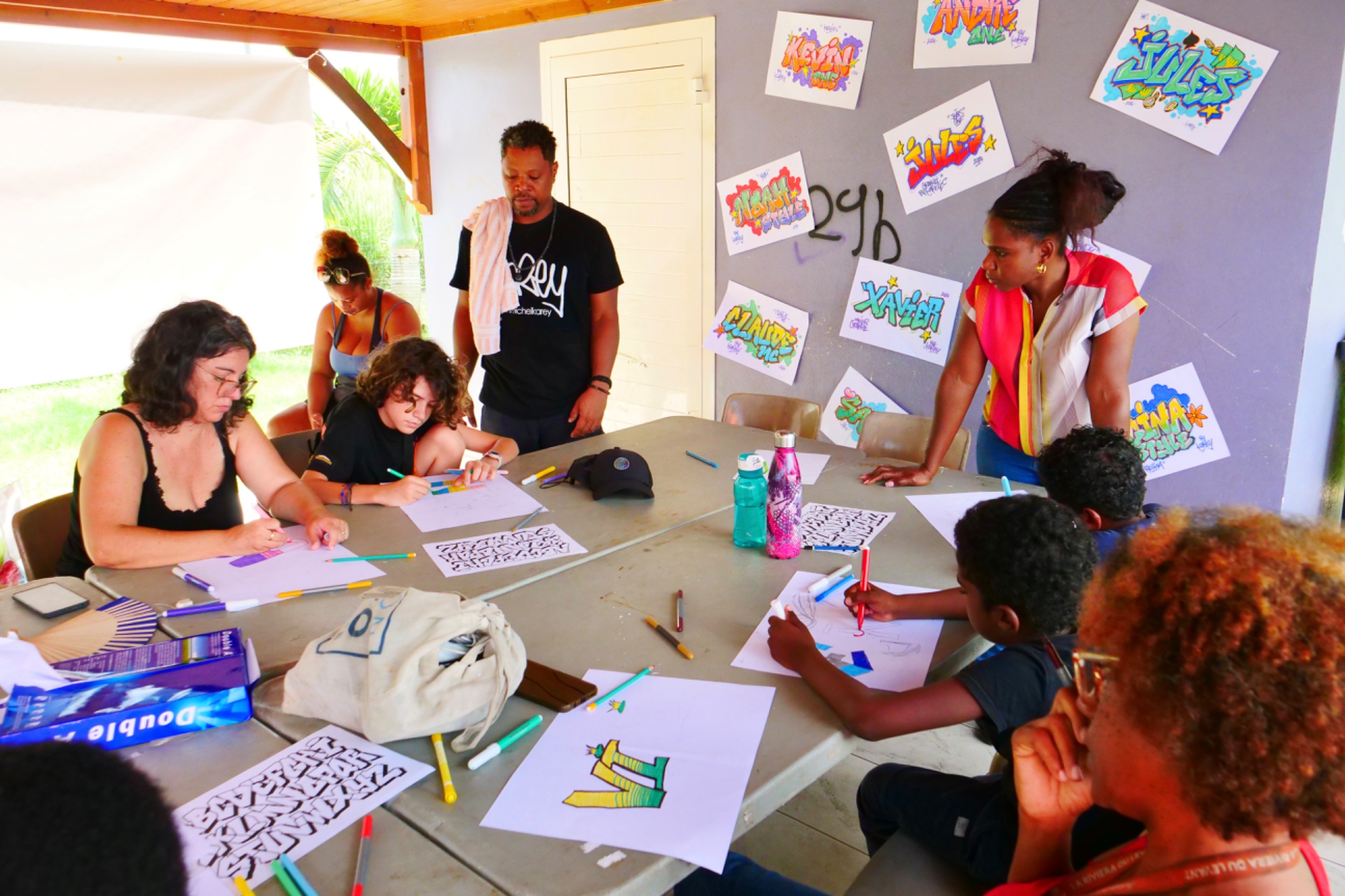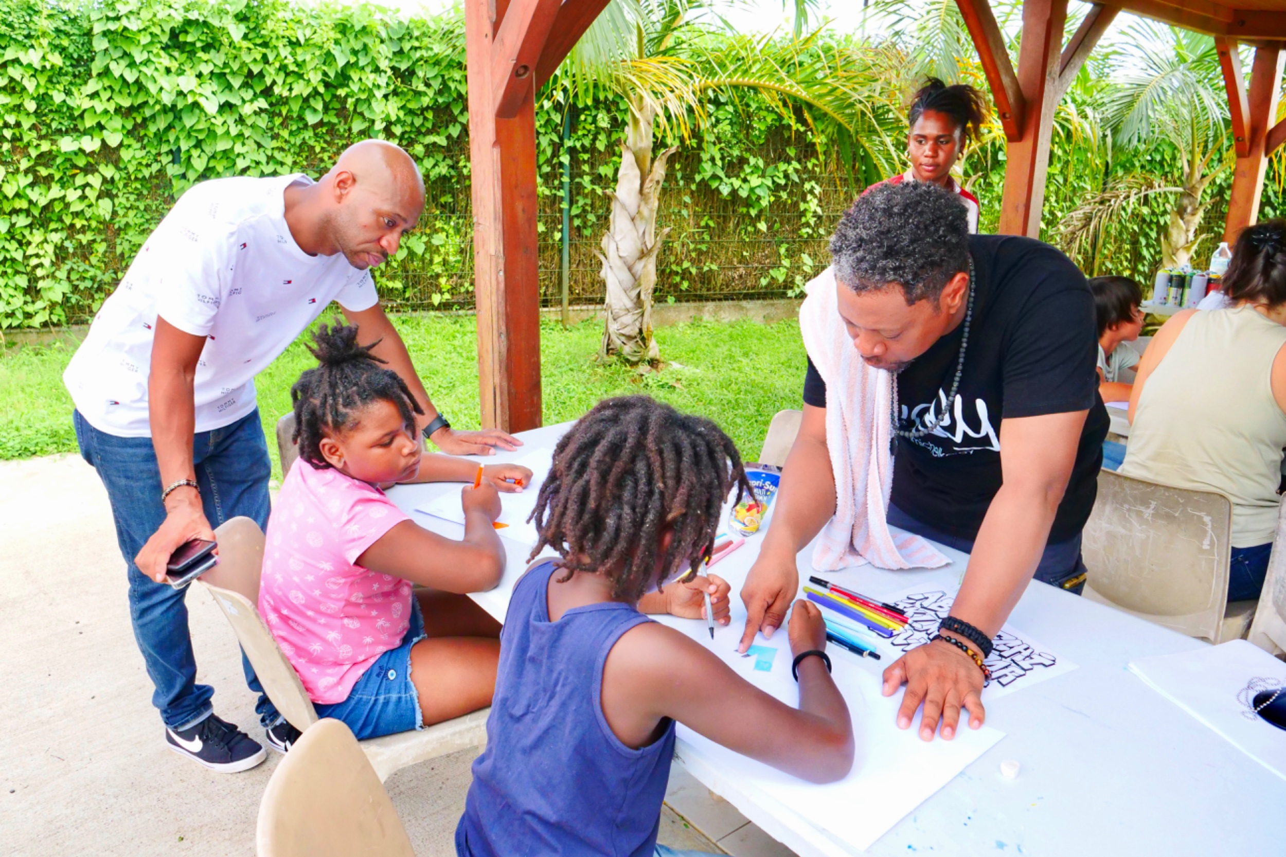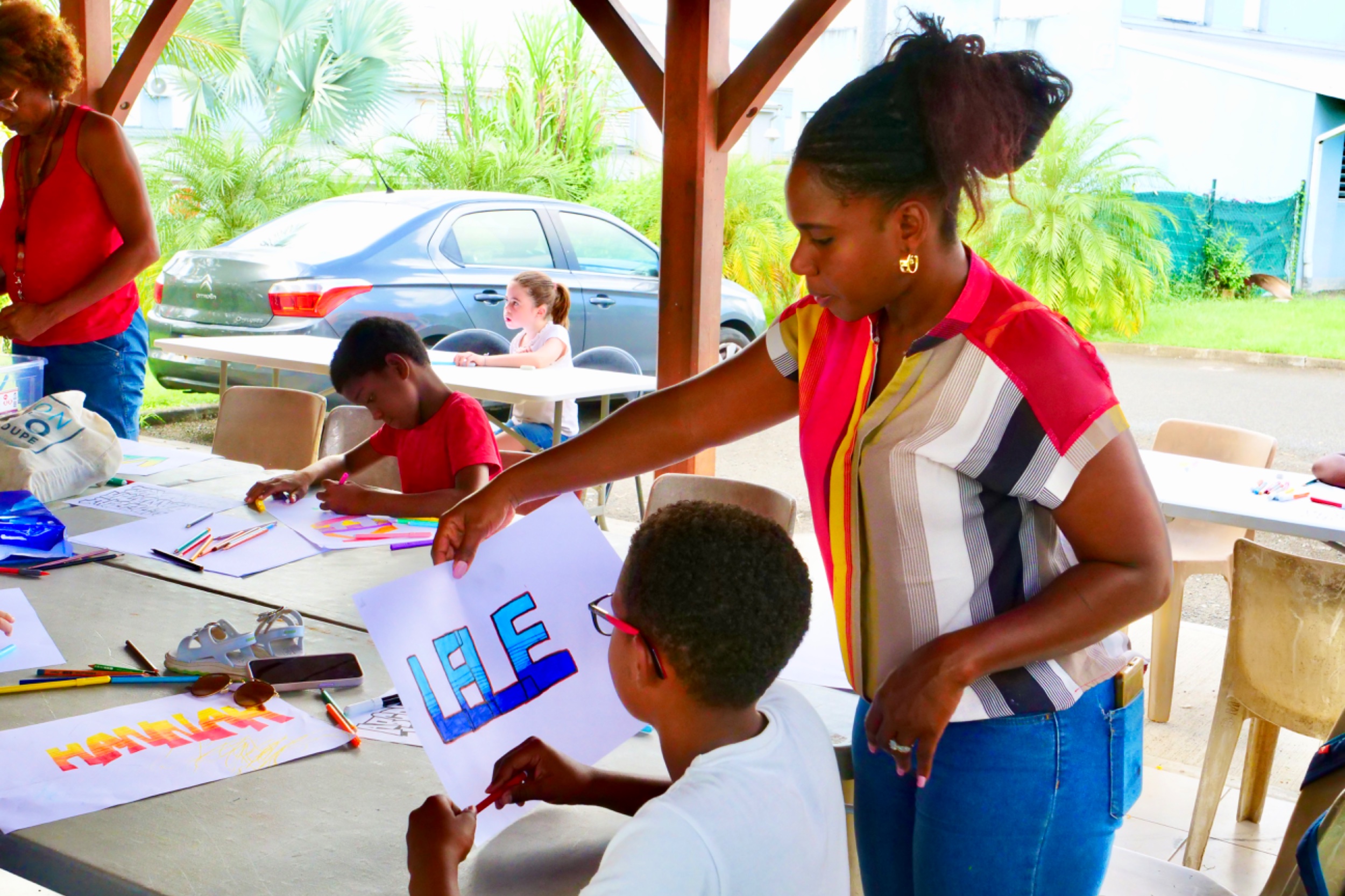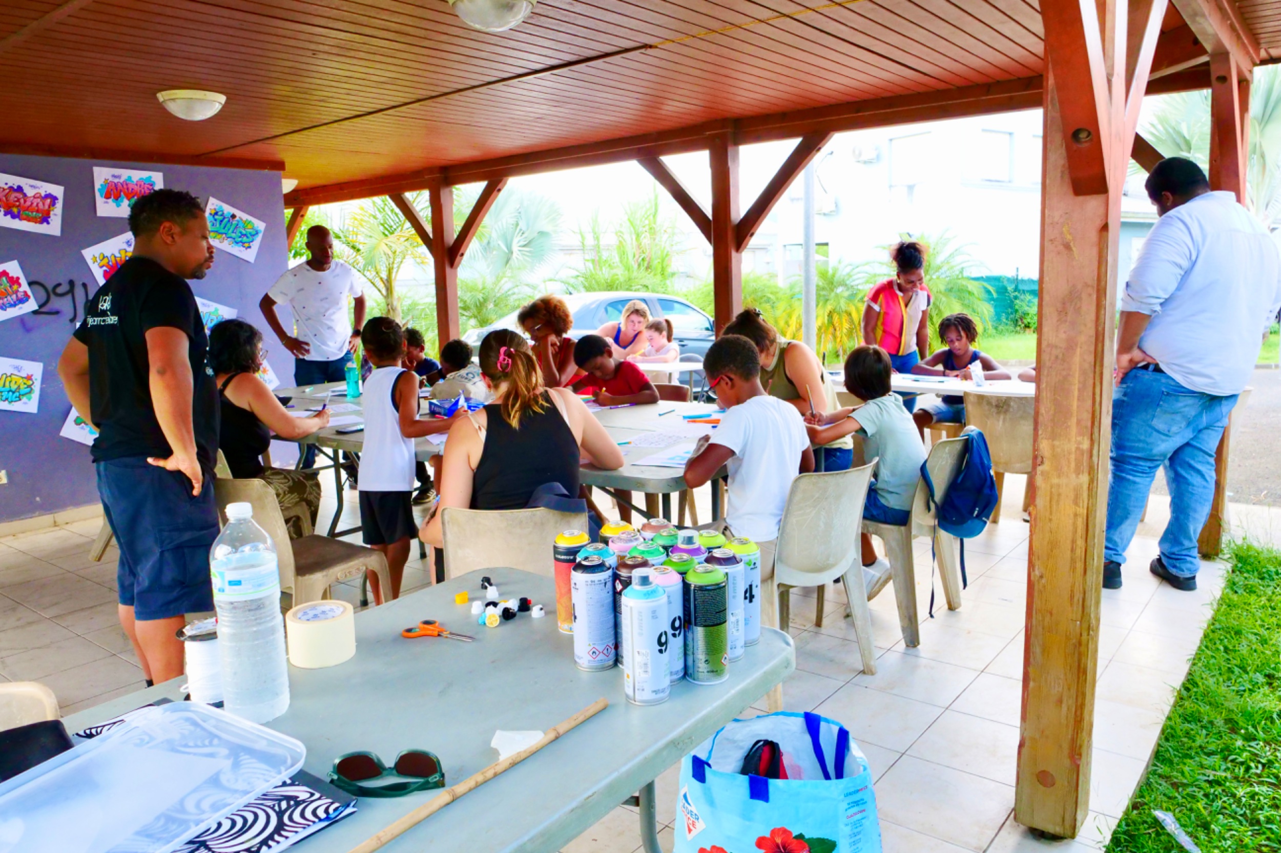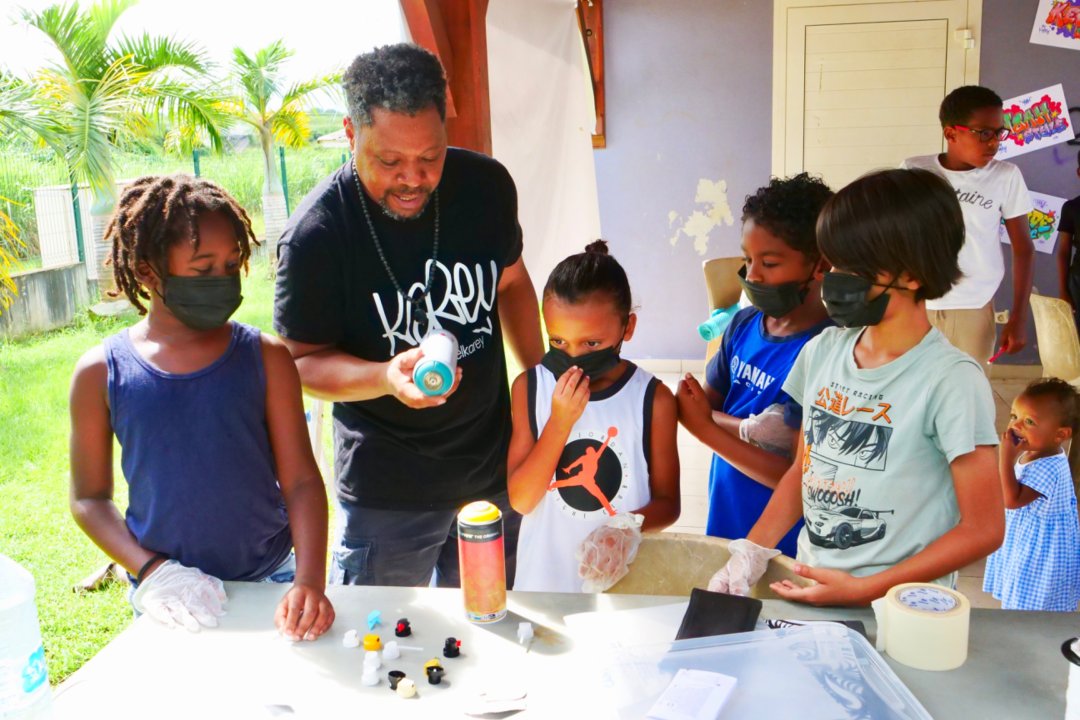 Retour en images sur l’atelier "2 mains en mains" atelier GRAFFITI parents-enfants organisé par le service enfance jeunesse, Mercredi 06 Novembre 2024, au LCR Les Petits-Cailloux à Caillou Lamentin.