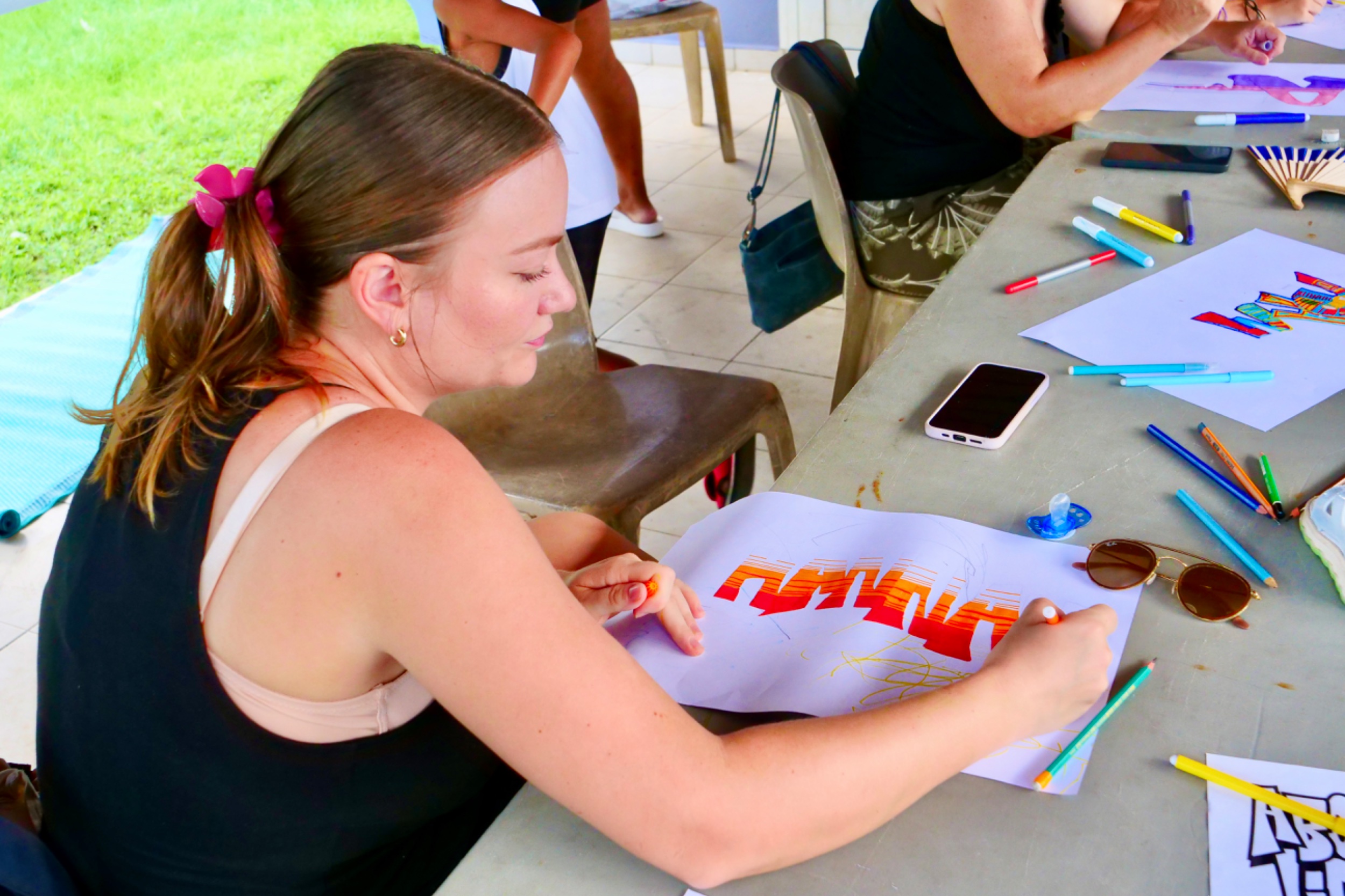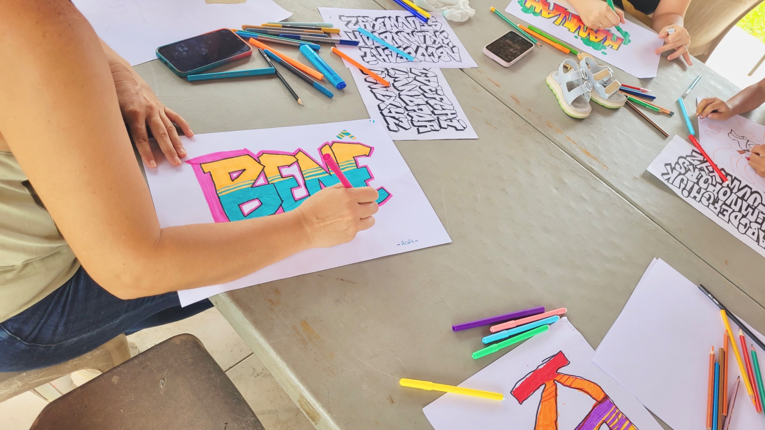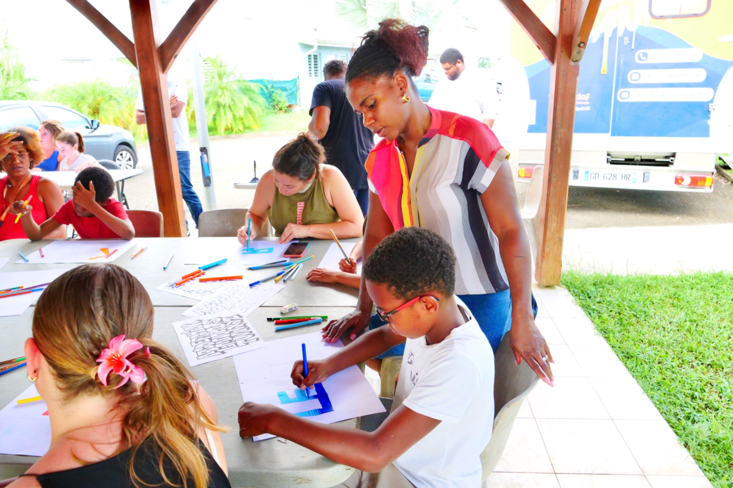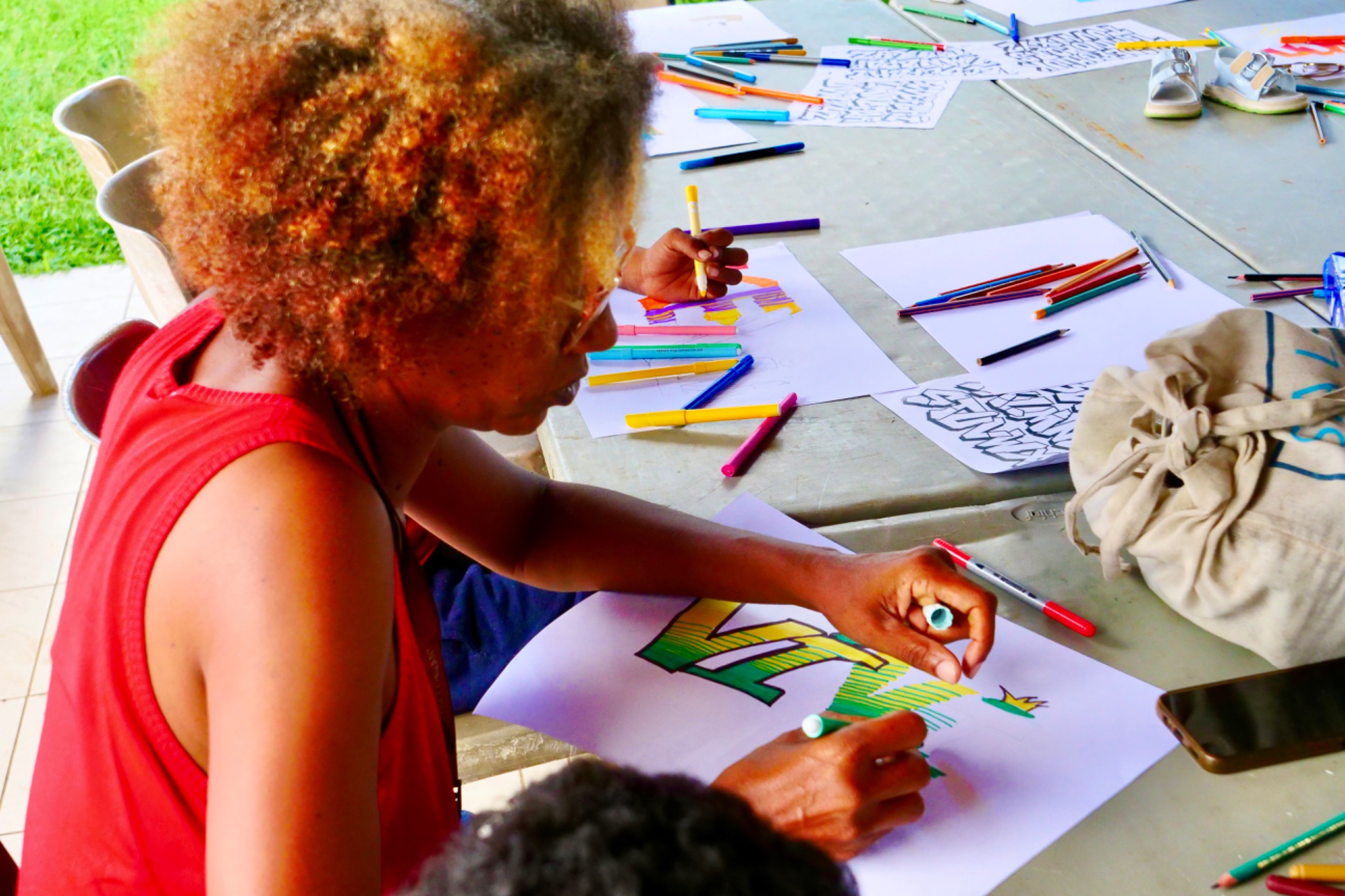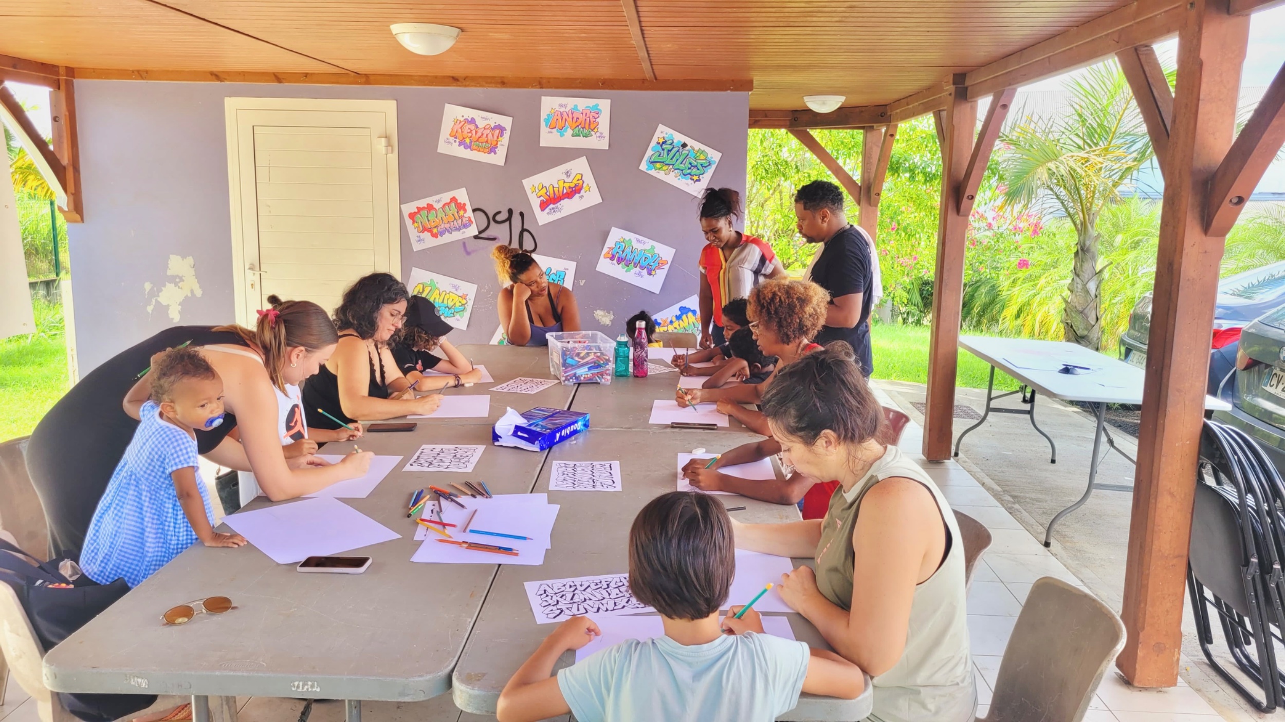 Retour en images sur l’atelier "2 mains en mains" atelier GRAFFITI parents-enfants organisé par le service enfance jeunesse, Mercredi 06 Novembre 2024, au LCR Les Petits-Cailloux à Caillou Lamentin.