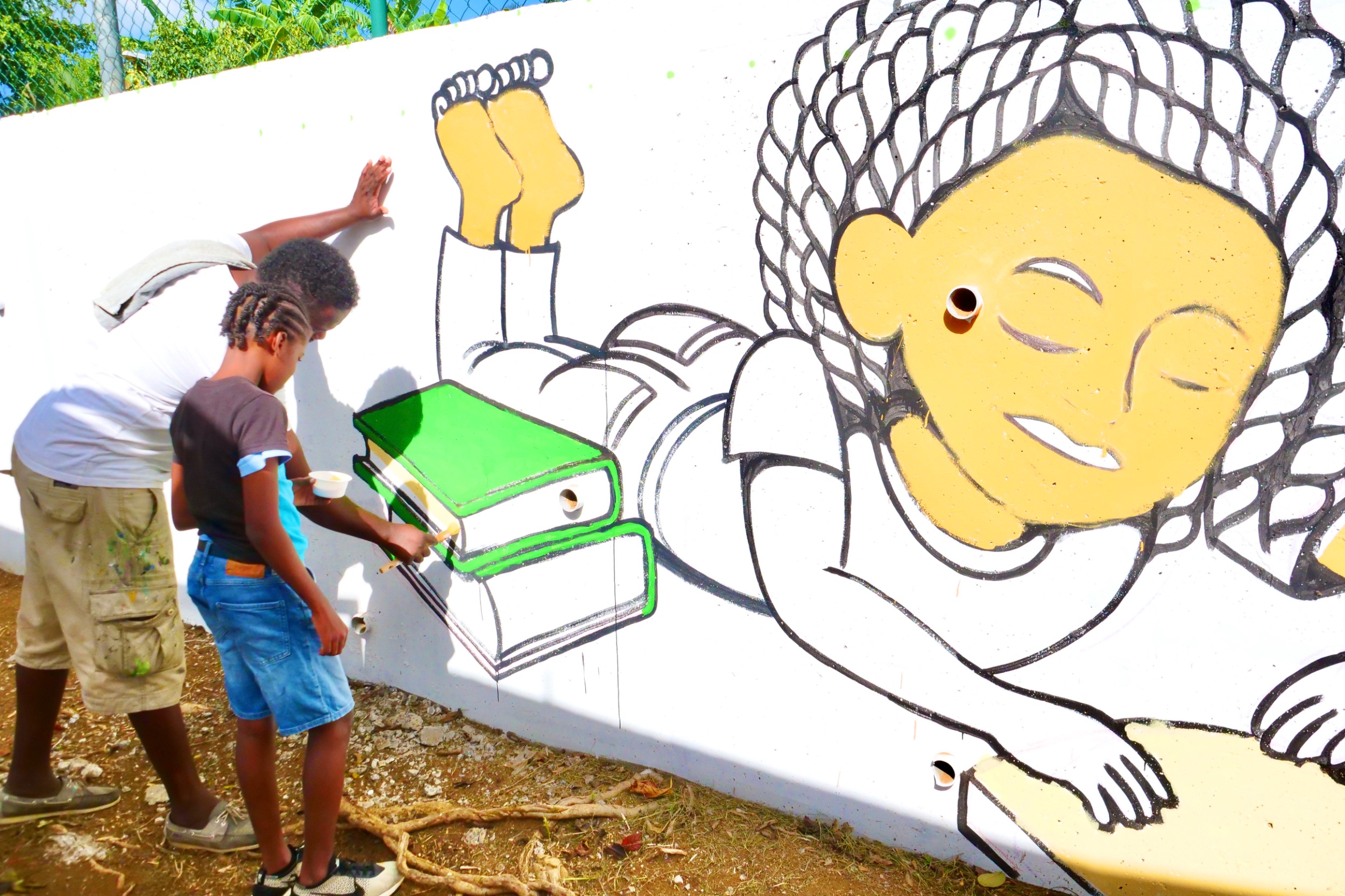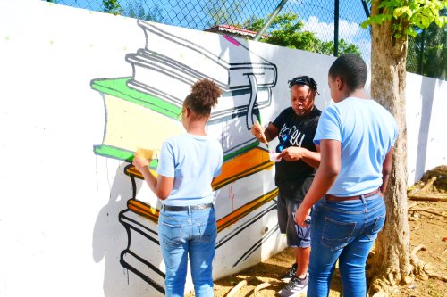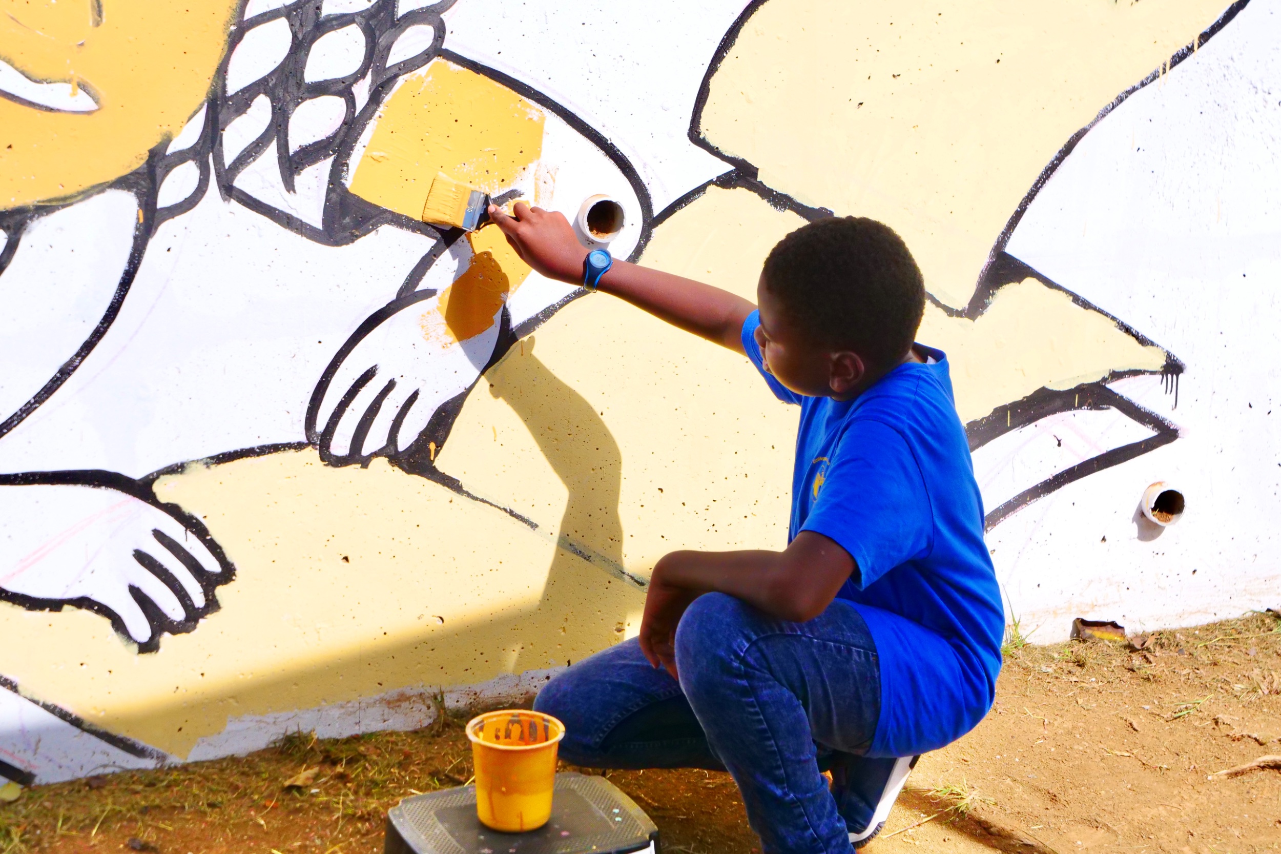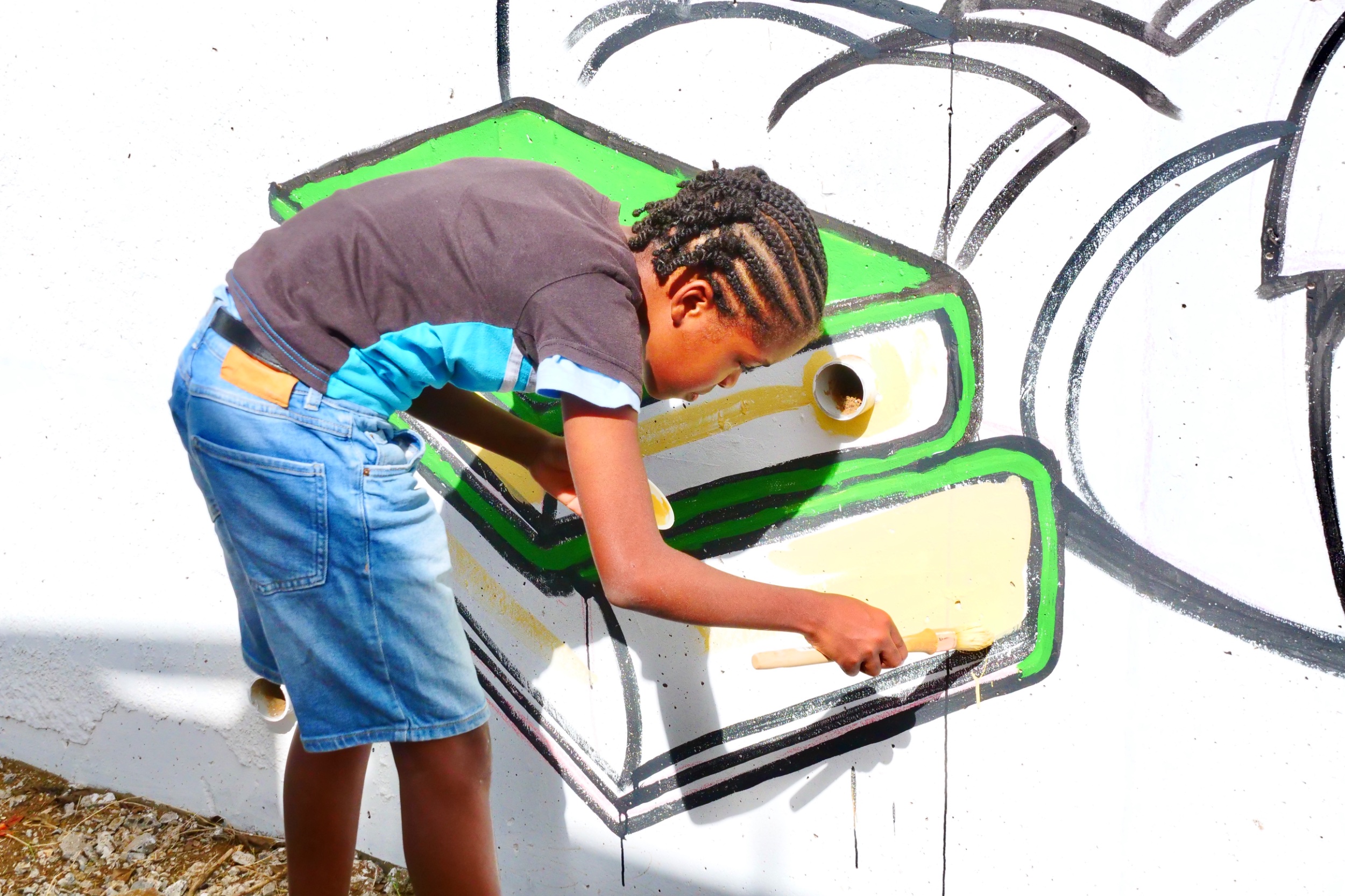 Ce jeudi 23 novembre, les jeunes participants ont poursuivi la création de leur fresque collective aux côtés des graffeurs Al Pacman, Karey et Tika.