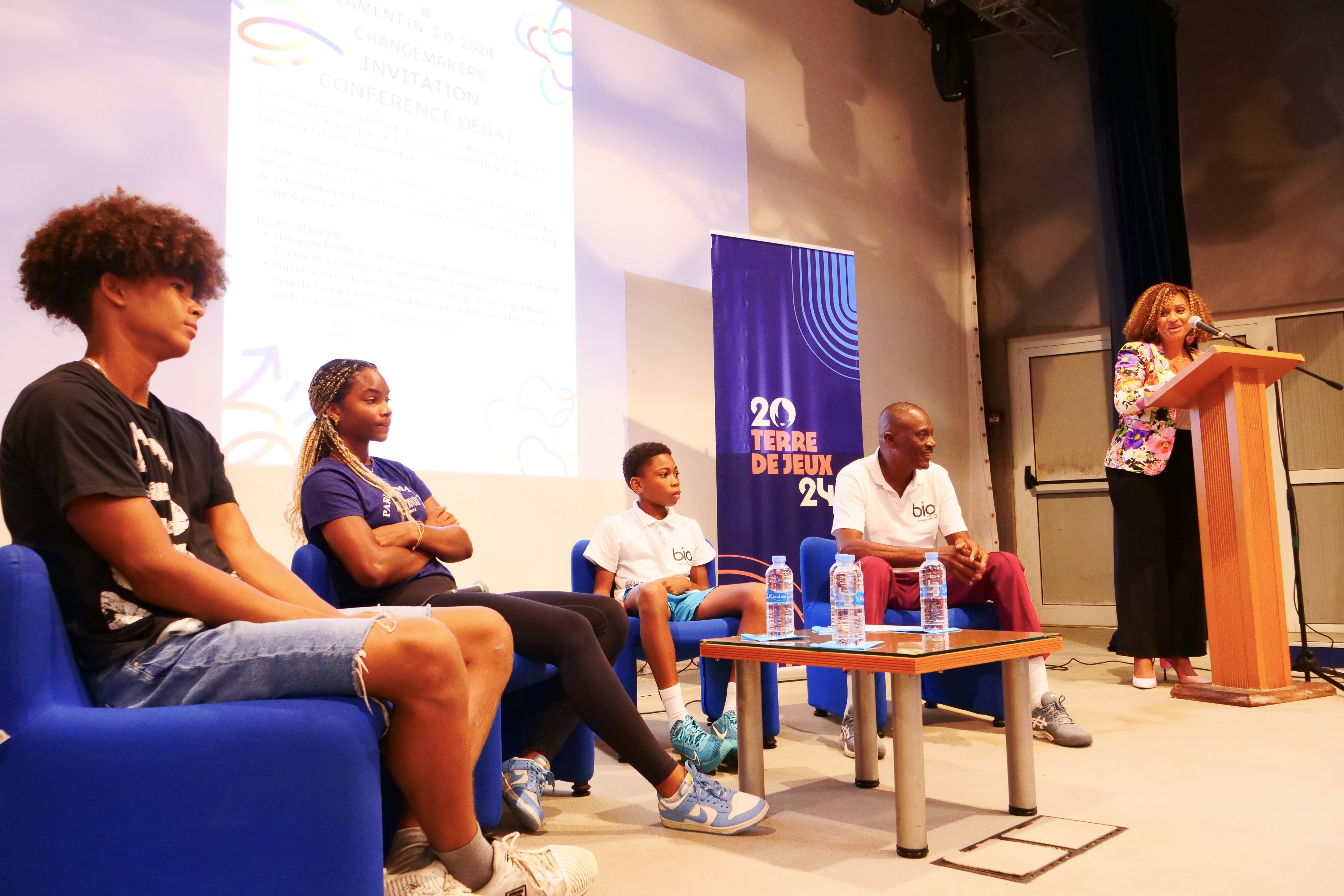 Dans le cadre du lancement officiel du PROJET LAMENTIN J.O 2024 CHANGEMAKERS, le Service Politique Sportive de la Ville de Lamentin et le Collège Appel du 18 Juin ont organisé une Conférence - Débat ce mardi 30 Janvier de 14H à 15H30, à la Médiathèque de Lamentin, sur le thème : SPORT & ÉTUDE EN EXCELLENCE, avec la présence de 3 invités : Nehanda THOMYAS, Mahel NOYON et leur coach de tennis, M. Fred HECTOR.