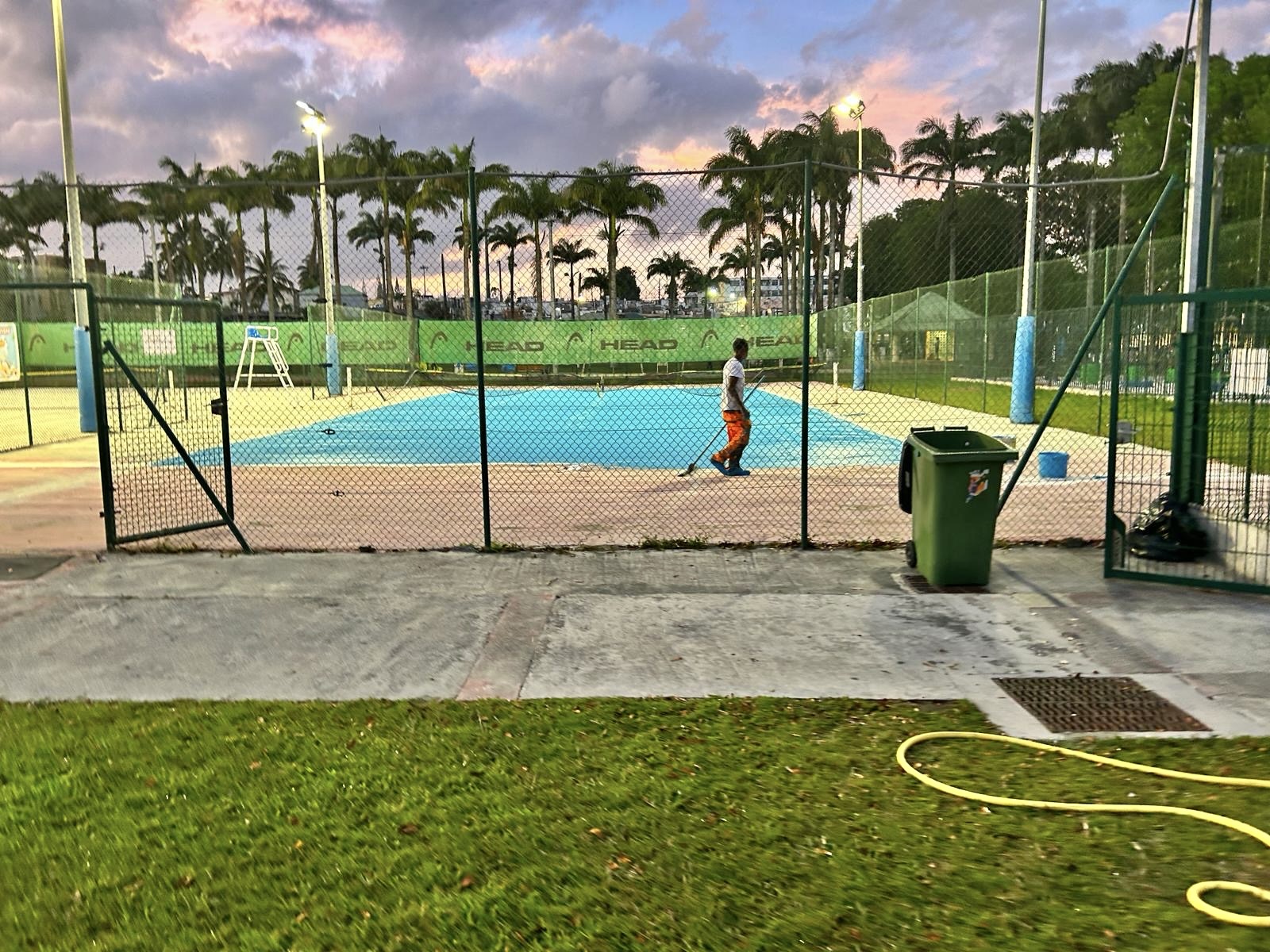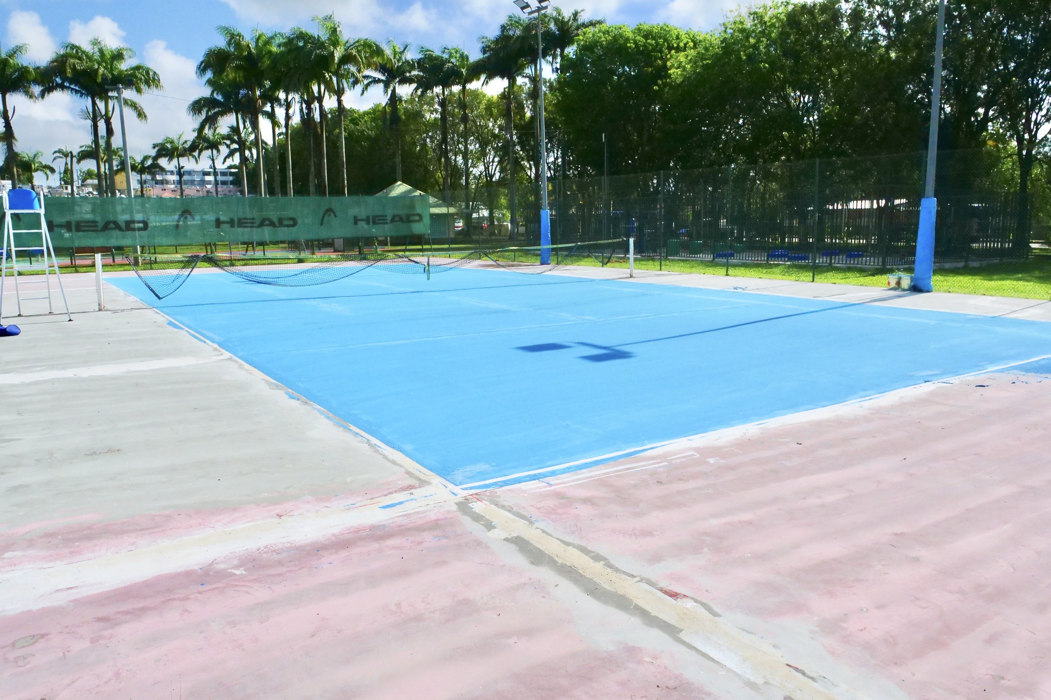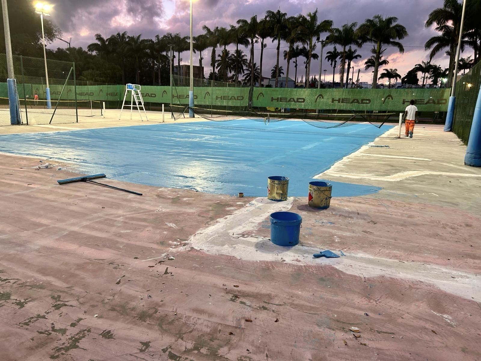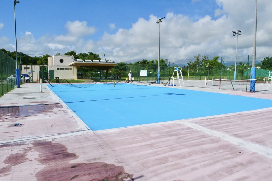 La pose du revêtement des courts de tennis est en phase d’avancement.